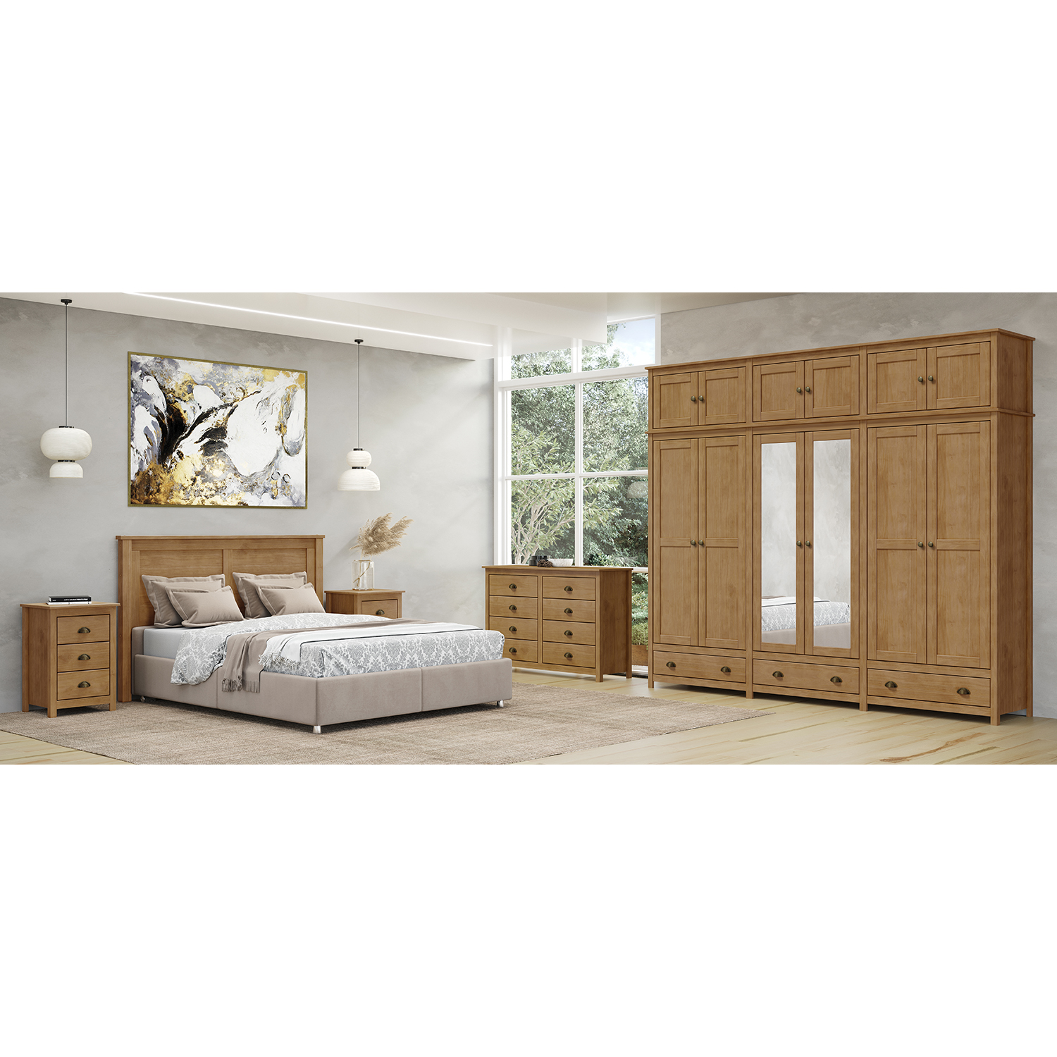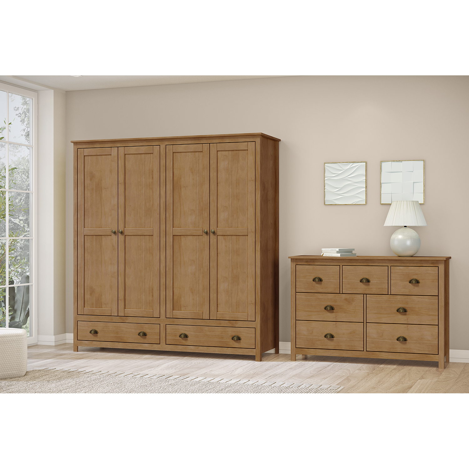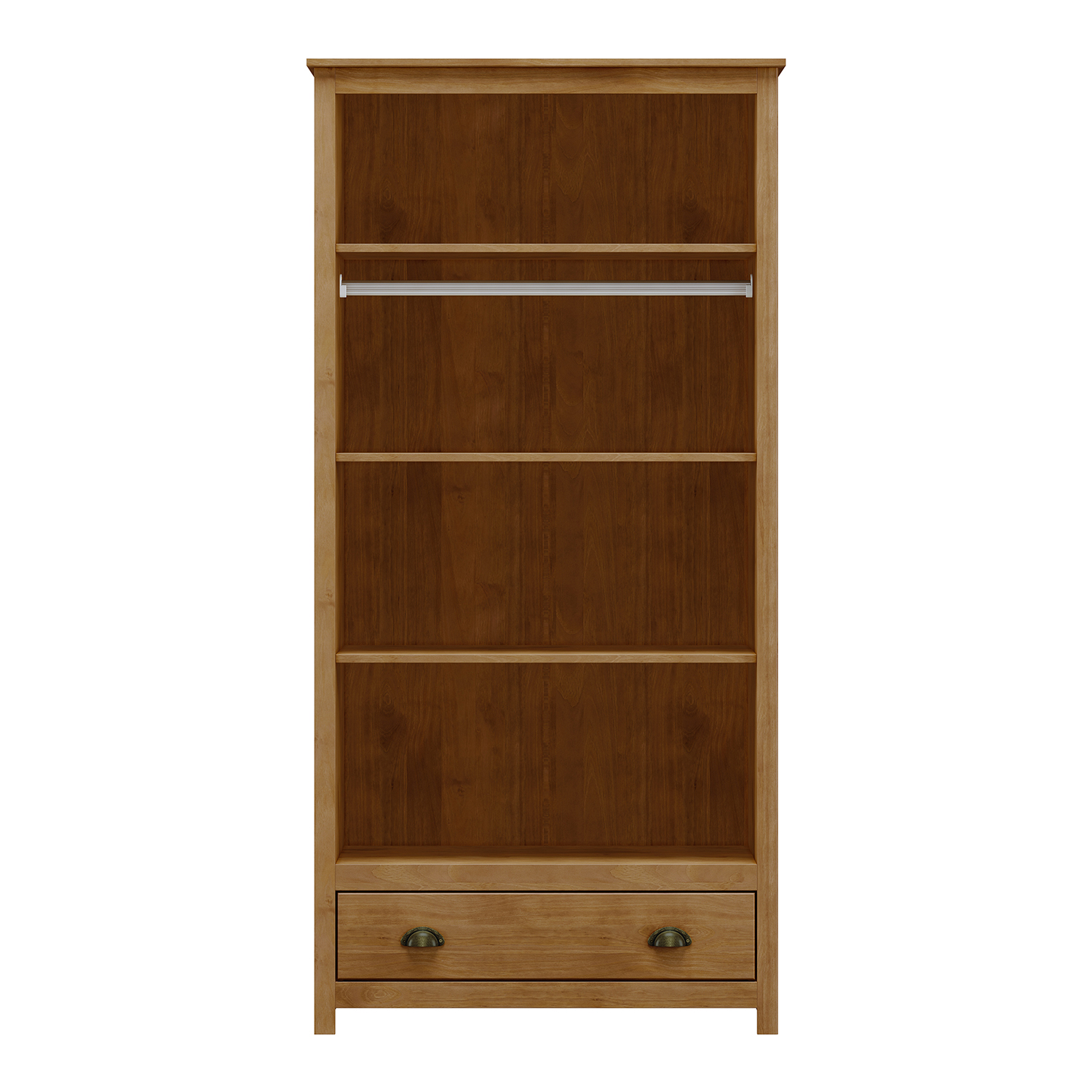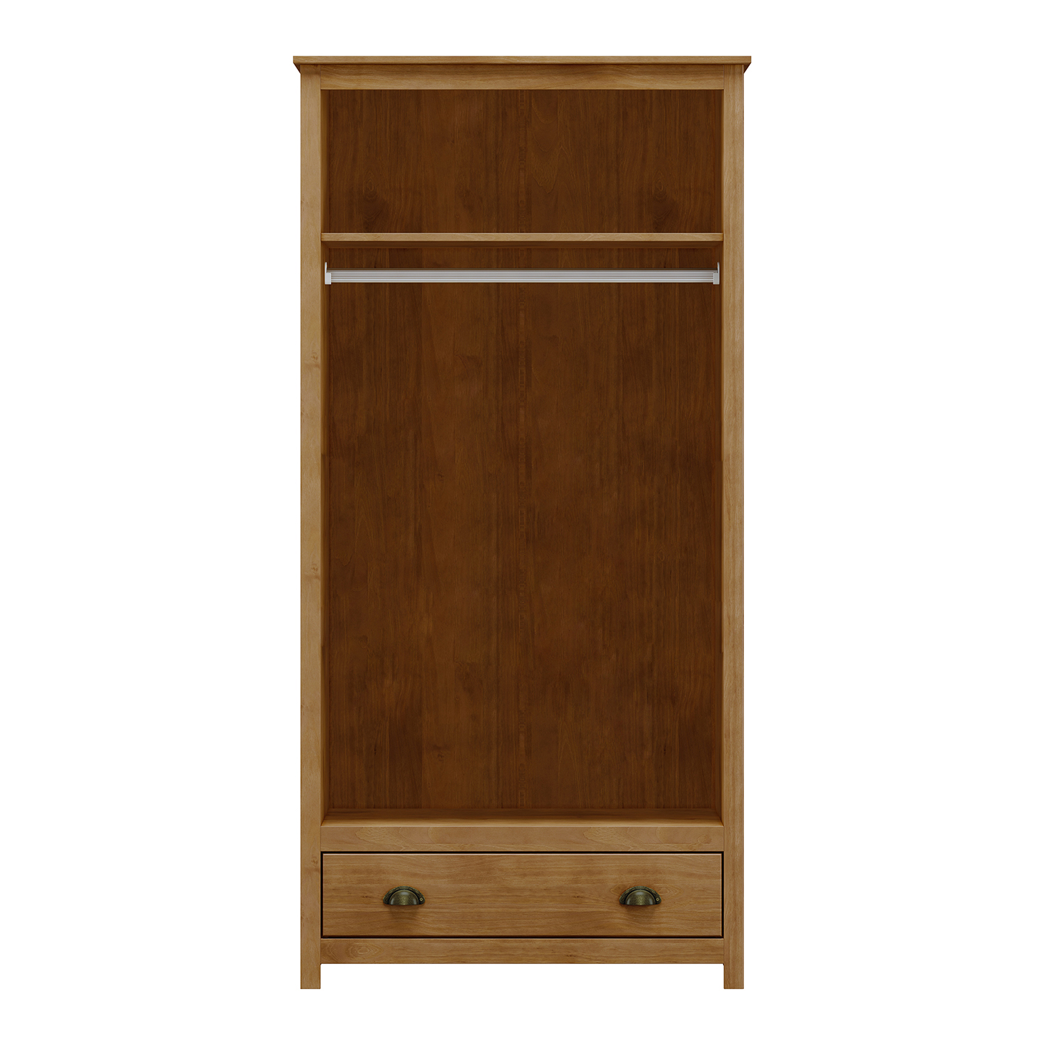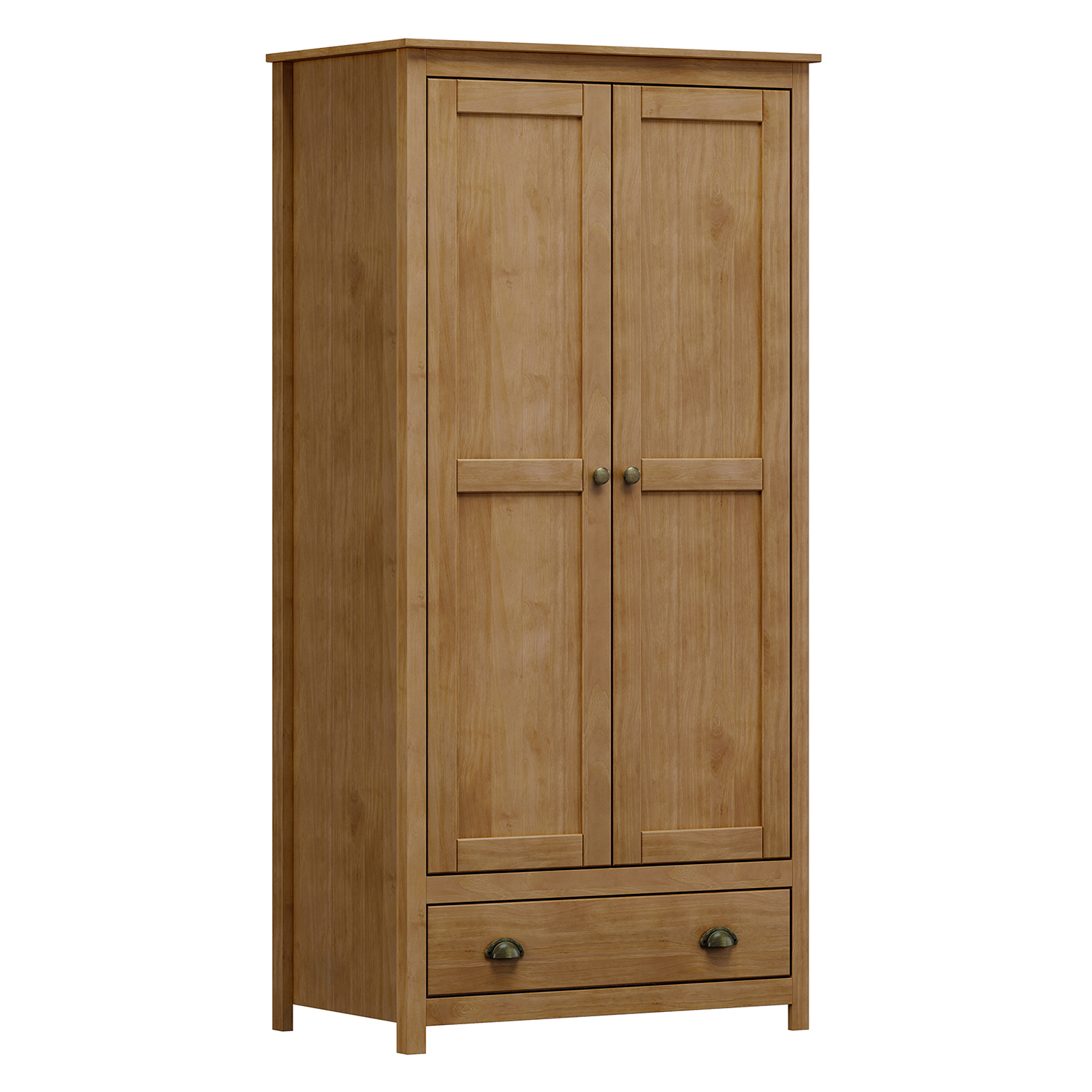Der zweitürige Kleiderschrank TOPAZIO in Eiche bietet einen einfachen, aber durchdachten Stauraum, der sich für den täglichen Gebrauch im Haushalt eignet. Er ist aus Massivholz gefertigt, was neben einer ansprechenden Optik auch eine lange Lebensdauer und einfache Pflege gewährleistet. Die lackierte Oberfläche schützt das Holz, unterstreicht seine natürliche Maserung und fühlt sich angenehm an. Der Schrank bietet einen praktischen Platz zum Aufhängen von Kleidung und zum Aufbewahren von gefalteten Teilen. Das Innere bietet viel Platz, den Sie leicht an Ihre Bedürfnisse anpassen können. Damit eignet sich der Schrank nicht nur für das Schlafzimmer, sondern auch für den Flur oder das Gästezimmer. Die Türen lassen sich bequem öffnen und die gesamte Konstruktion fühlt sich solide und stabil an. Die Metallgriffe passen zum Gesamtdesign und verleihen dem Schrank einen leicht modernen Touch. Das Eichendekor in Kombination mit den klaren Linien schafft einen ruhigen und ausgewogenen Look, der in fast jede Einrichtung passt. Er lenkt nicht ab, sondern ergänzt den Raum auf natürliche Weise und wirkt wie ein selbstverständlicher Teil von ihm. Der Kleiderschrank TOPAZIO ist ein Möbelstück, das nicht auf Exzentrik, sondern auf Ehrlichkeit des Materials und funktionellem Design basiert. Er eignet sich für alle, die ein hochwertiges Holzmöbel mit einem einfachen, aber raffinierten Look suchen.