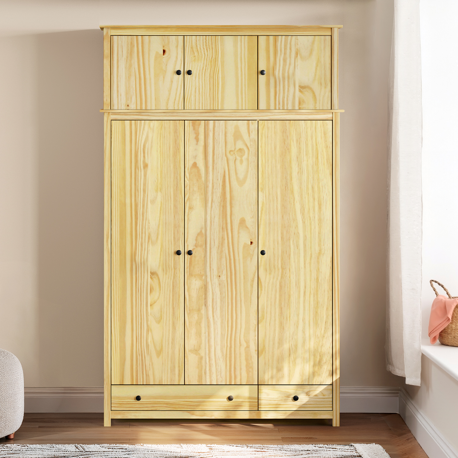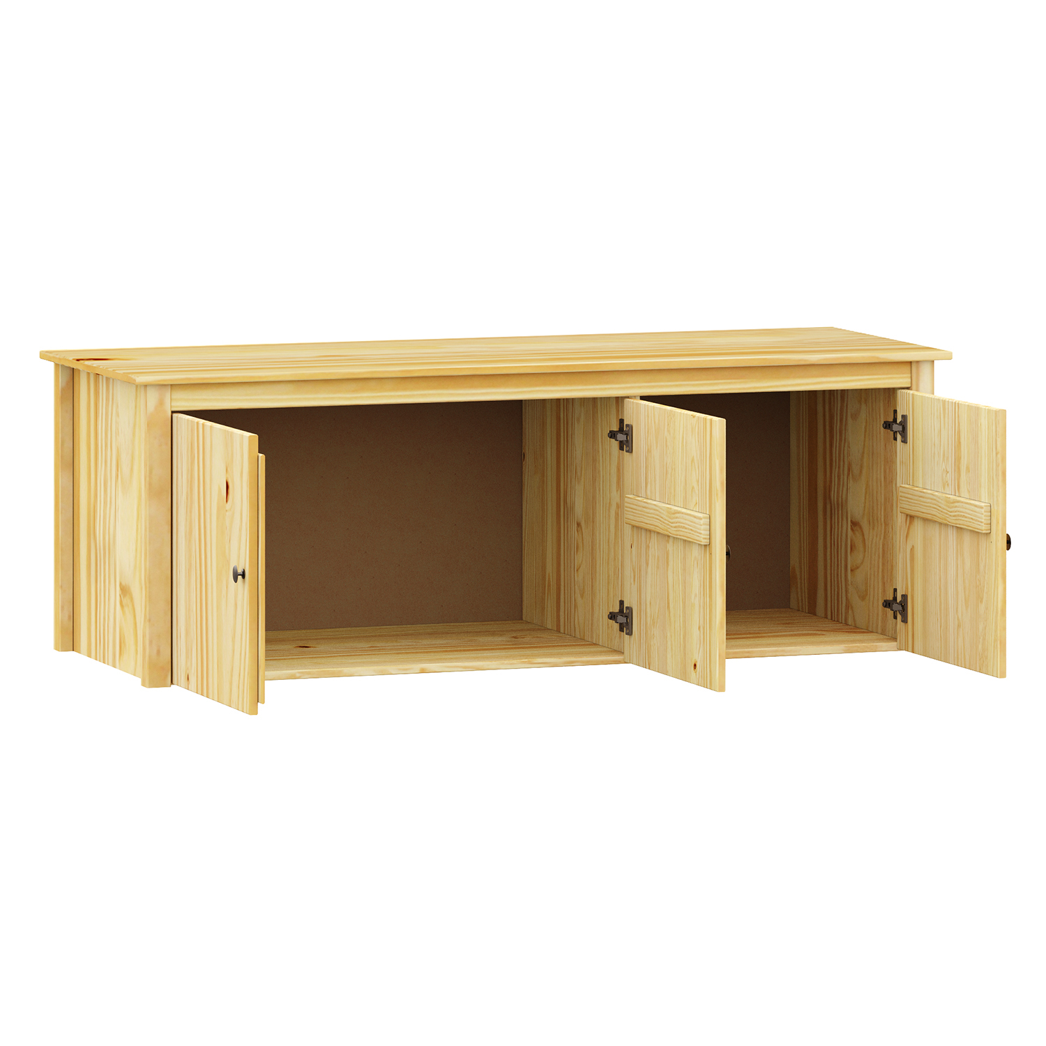 Der dreitürige Anbau TORINO ist genau die Art von Möbel, die Sinn macht. Unprätentiös, praktisch und doch ästhetisch überzeugend. Er ist so konzipiert, dass er Ihre Garderobe ergänzt, aber nicht einfach nur ein Zusatz ist. Er hat seinen eigenen Ausdruck, seine eigene Funktion und einen Grund, Teil Ihres Zuhauses zu sein. Massives Kiefernholz hat eine ehrliche und solide Ausstrahlung, die von allen geschätzt wird, die Möbel mit natürlichem Gewicht und Textur mögen. Die Lackierung hebt die Maserung des Holzes hervor, schützt das Material aber auch vor Abnutzung und Verschleiß. Im Inneren finden Sie einen Stauraum, der nicht mit unnötigen Dingen überladen ist. Hinter der Tür verbirgt sich ein Platz, an dem Sie bequem Bettwäsche, Kisten mit Dokumenten oder auch saisonale Textilien aufbewahren können. Die Metallgriffe sind nicht dekorativ, sondern zweckmäßig. Sie liegen angenehm in der Hand und halten länger als ein gelegentliches Öffnen. Die Konstruktion bietet einen festen Halt und ist auch bei voller Beladung nicht störend. Geeignet für das Schlafzimmer, das Arbeitszimmer und den Ankleideraum. Er will nicht auffallen, aber wenn man genau hinsieht, erkennt man, dass die Einfachheit seine Stärke ist. Die TORINO-Erweiterung ist kein Trend, sondern ein Klassiker, der auch in zehn Jahren noch Bestand haben wird. Wenn Sie auf der Suche nach einem Möbel sind, das nicht nervt, sondern dient und hält, haben Sie es gerade gefunden.
