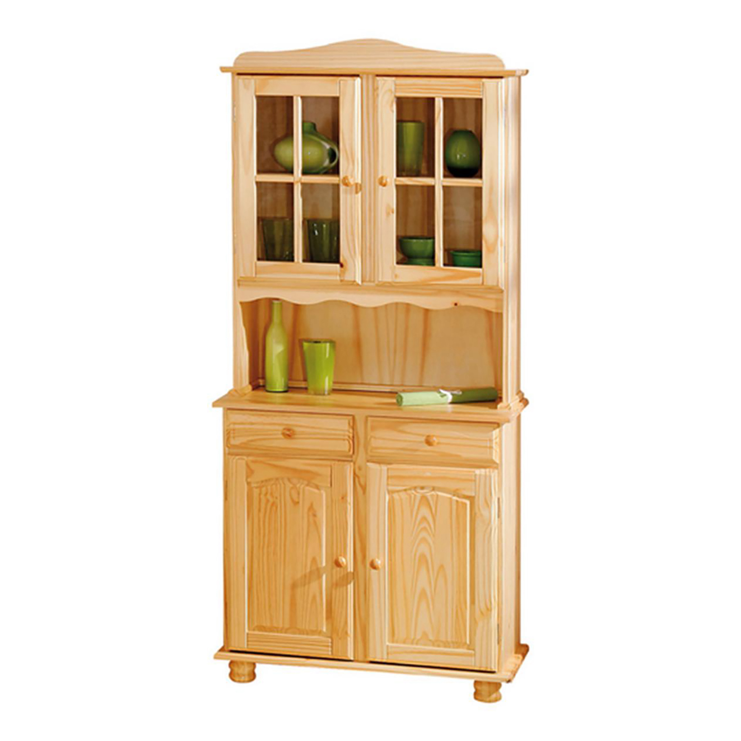 Die Anrichte lässt Ihren Essbereich unglaublich lebendig wirken und bietet einen wichtigen Platz für die Aufbewahrung von Geschirr, Töpfen und Lebensmitteln. Die Anrichte ALICANTE 8058 aus lackiertem massivem Kiefernholz passt in fast jede Küche. Die Anrichte bietet Platz für alle Utensilien sowie für Gewürze und wichtige Kochzutaten. Im unteren Bereich befinden sich zwei Schubladen mit Metallführungen für Besteck und Küchenutensilien sowie zwei Türen mit einem Einlegeboden. In den Regalen hinter der oberen Glastür können Sie Ihre Lieblingstassen oder -schüsseln, Mörser und Stößel ausstellen. Große Anrichten sind in jeder Wohnung ein beliebtes Möbelstück, in dem alles, was man zum Kochen braucht, aufbewahrt werden kann und das den Raum schön auflockert. Ein praktisches Möbelstück, das allen ehrlichen Hausfrauen gefällt.
