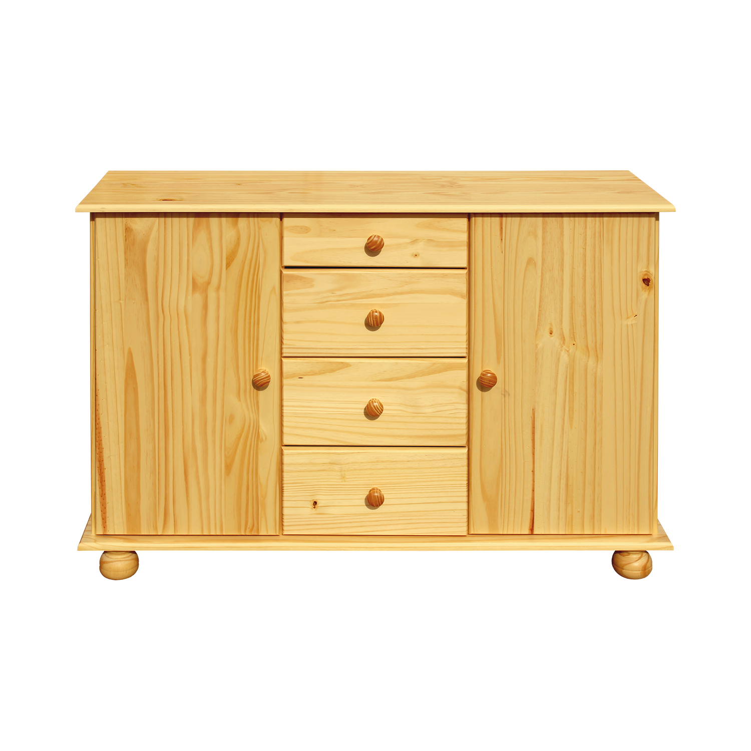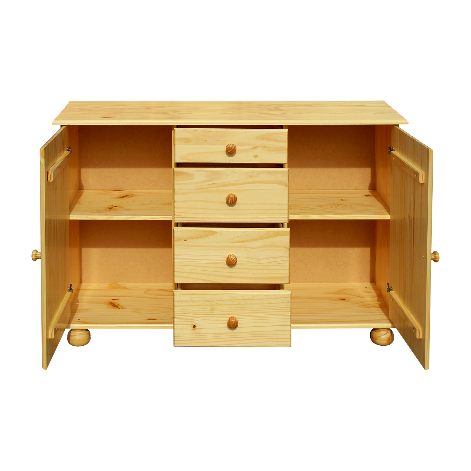 Anrichte: 4 Schubladen mit Metallschienen, 2 Schränke mit Türen, die mit Einlegeböden ausgestattet sind