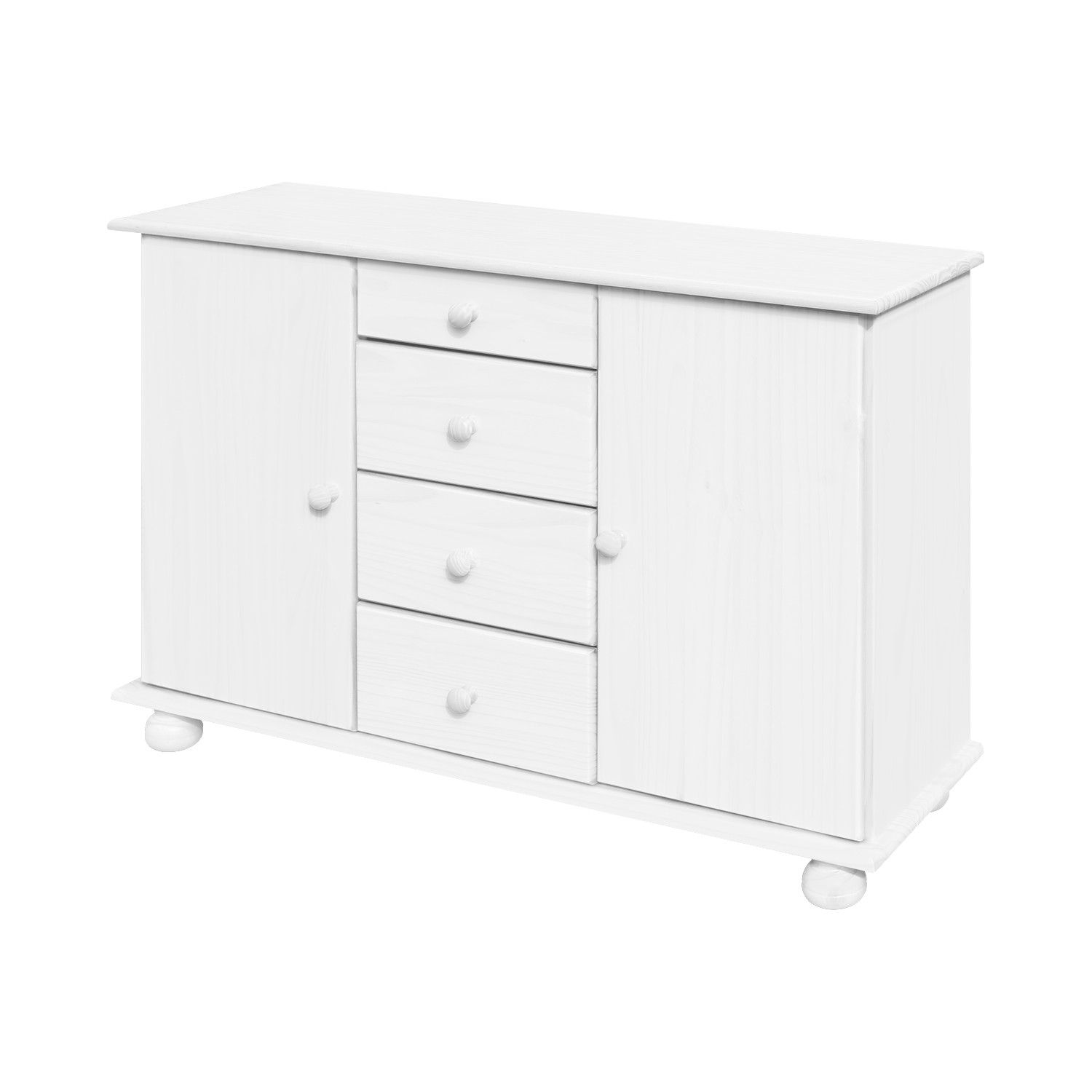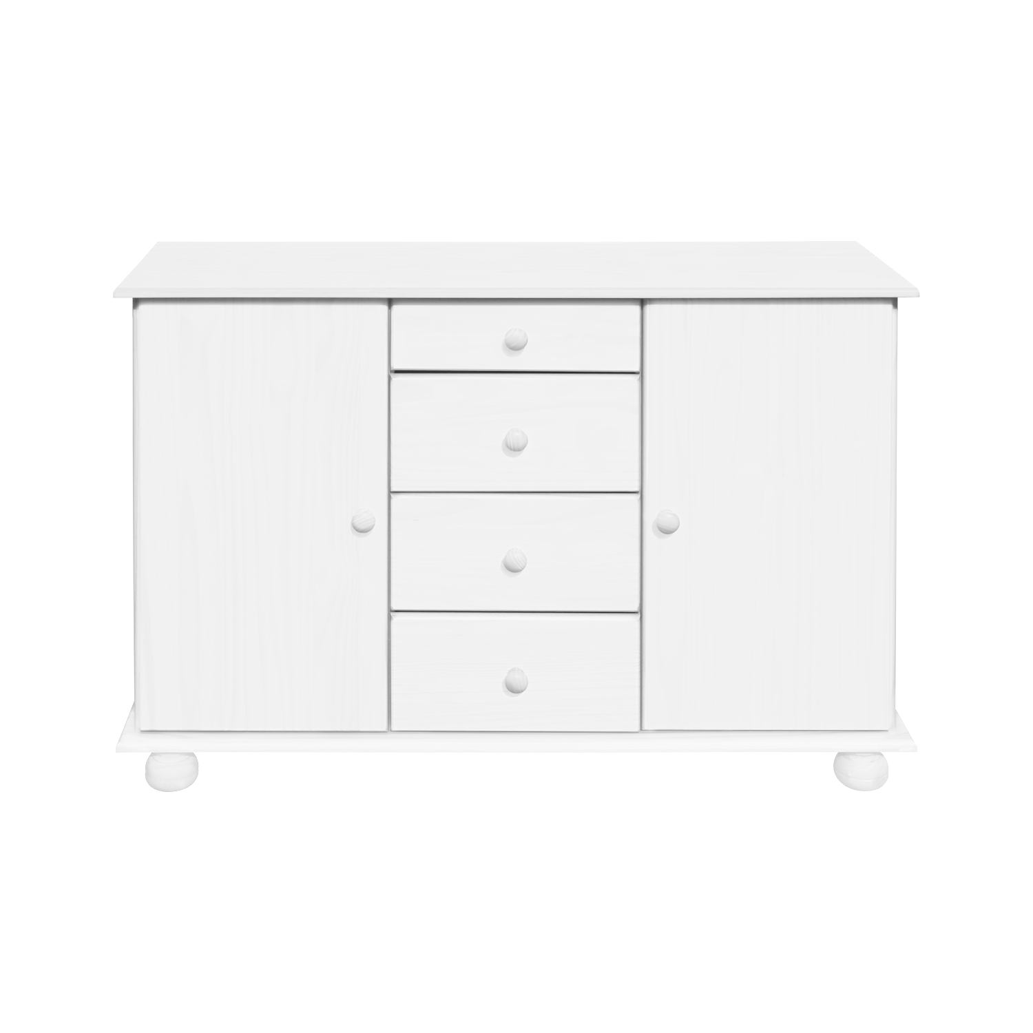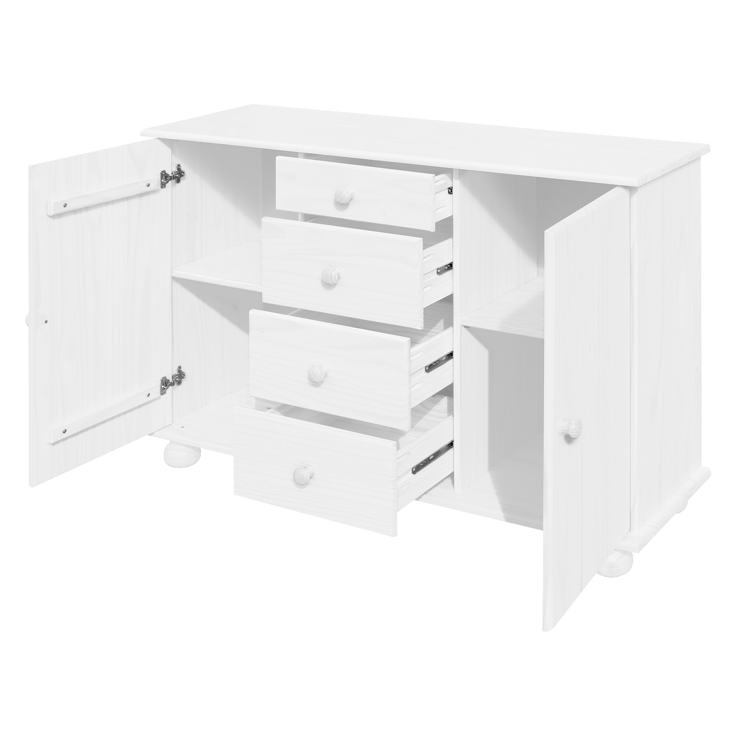 Anrichte: 4 Schubladen mit Metallschienen, 2 Schränke mit Türen, die mit Einlegeböden ausgestattet sind