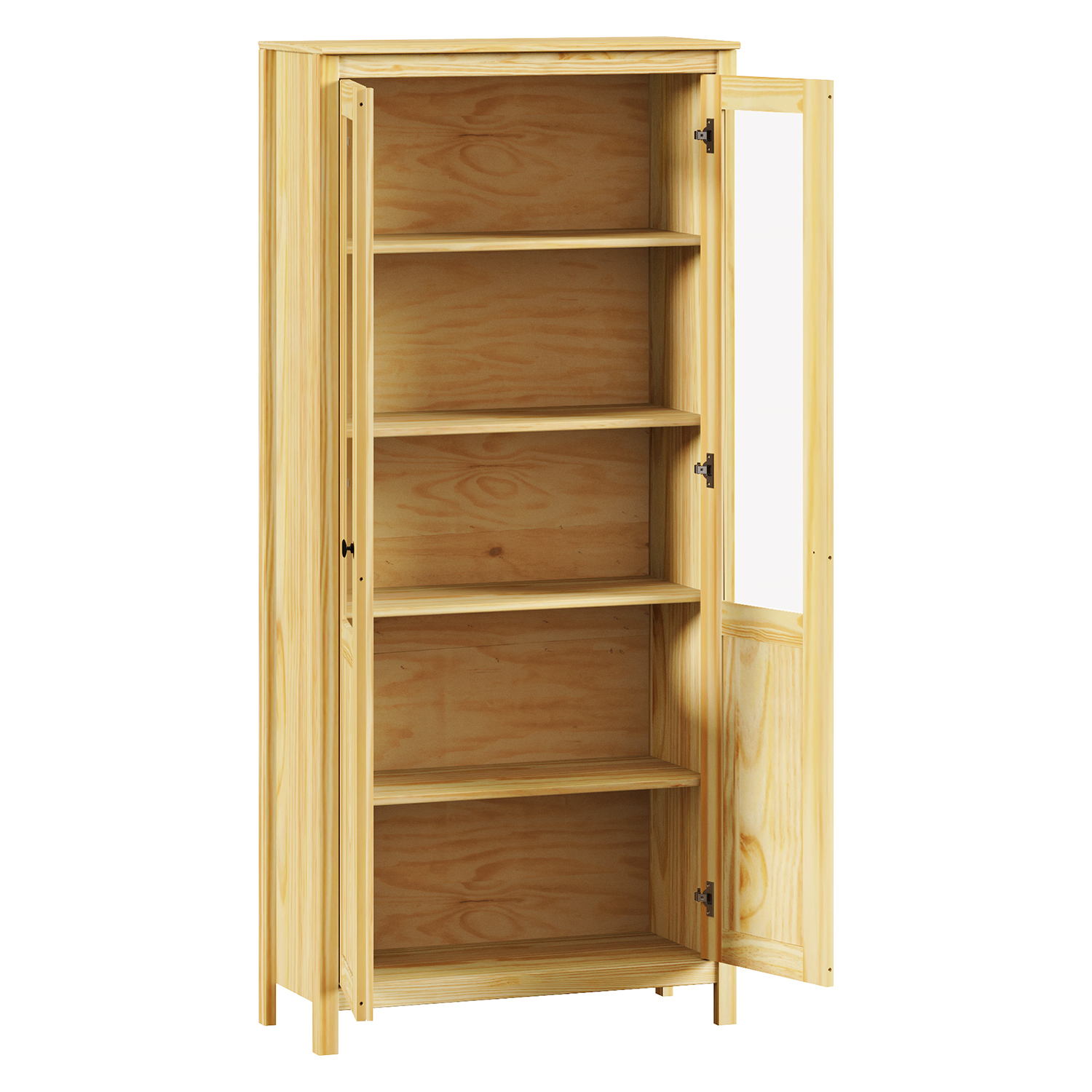 Produktcode: 8069KMaterial Kiefer massiv, lackiertMetallgriffe aus schwarzem Messingzwei teilweise verglaste Türen, vier Einlegeböden