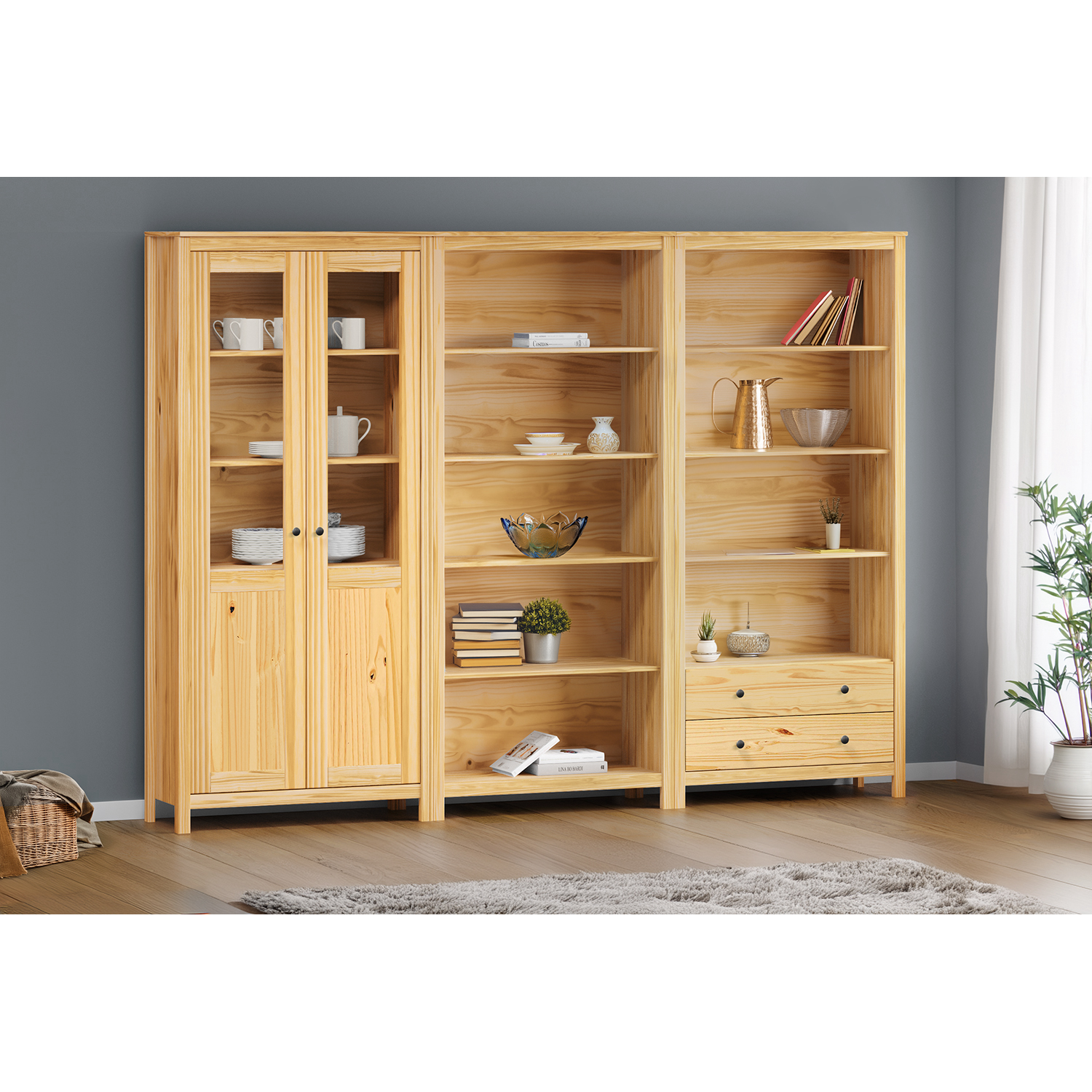 Das TORINO Bücherregal-Set ist genau die Art von Möbel, die Aufmerksamkeit erregt. Es braucht keine unnötigen Verzierungen oder kompliziertes Design. Es begnügt sich mit einer Einfachheit, die Sinn macht. Das massive Kiefernholz wirkt stabil und solide. Das ist ein Material, dem man vertrauen kann. Die Metallgriffe verleihen ihm Persönlichkeit und ein bisschen Industrieflair. Dieses Set bietet eine Menge Stauraum. Die Regale sind logisch und praktisch angeordnet. Sie eignen sich für Bücher, Dekorationen, Kisten und kleine Dinge, die man immer griffbereit haben möchte. Egal, ob Sie es im Arbeitszimmer, im Wohnzimmer oder im Flur aufstellen, es fügt sich immer mit natürlicher Leichtigkeit ein. Es ist ein Möbelstück, das die Kulisse für den Alltag bildet, aber gleichzeitig einen eigenen Ausdruck hat.