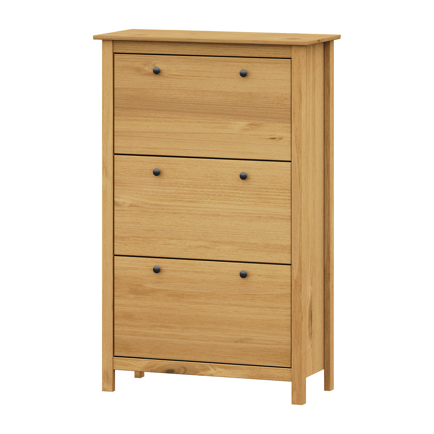 Produktcode: 8061Vmateriál masiv borovice voskovaná v medovém odstínu kovové úchytky v barevném provedení černěná mosaz 3 zásuvky s kovovými pojezdy, 3 plné dveře, 2 police maximální nosnosti uvedeny v návodu k montáži