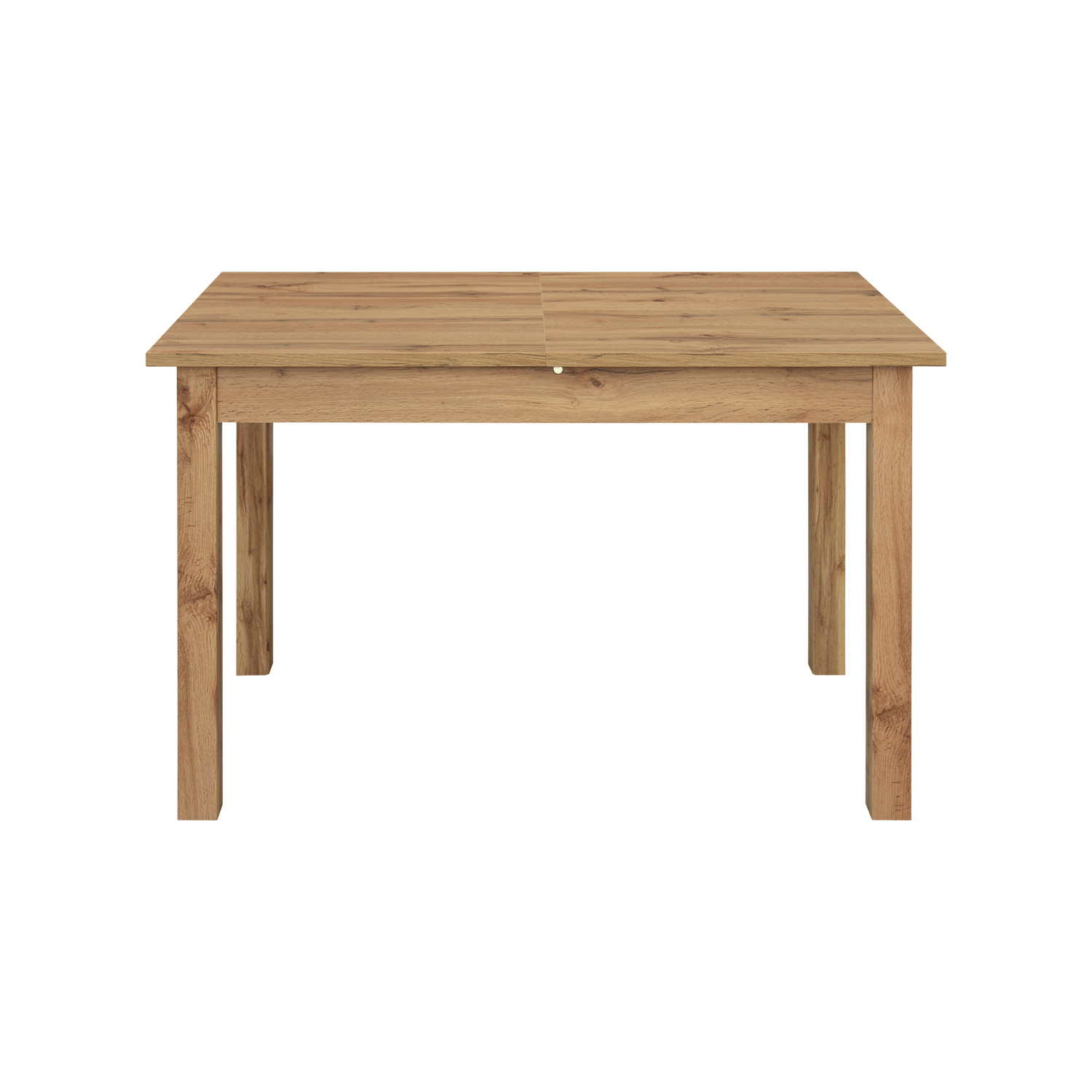 Der Esstisch KURT 120 Eiche Woltan ist sowohl für kleinere als auch für größere Familien geeignet. Der Tisch kann mit dem 40 cm großen Auszug ausgeklappt werden. Dadurch können Sie mehr Personen an den Tisch setzen, zum Beispiel wenn Sie Geburtstagsfeiern oder Familientreffen organisieren. Auf den Tisch passen genug Leckereien, um alle zufrieden zu stellen. Das Eichenholz-Finish macht sich in jeder Wohnung gut. Sie können ihn auch mit einer weißen Küche kombinieren. Diese Kombination sieht einfach toll aus und Ihre Gäste und Familienmitglieder werden sie lieben.