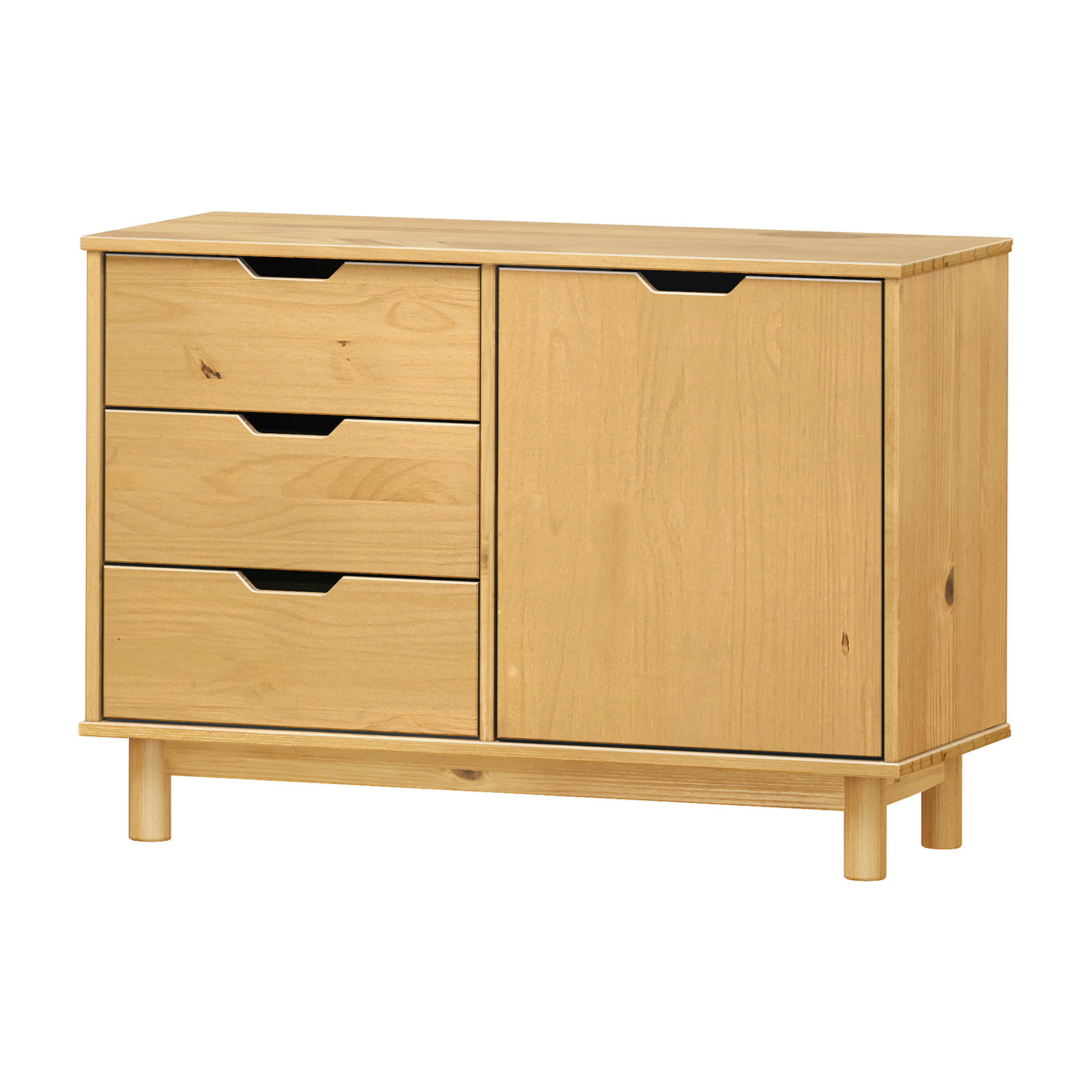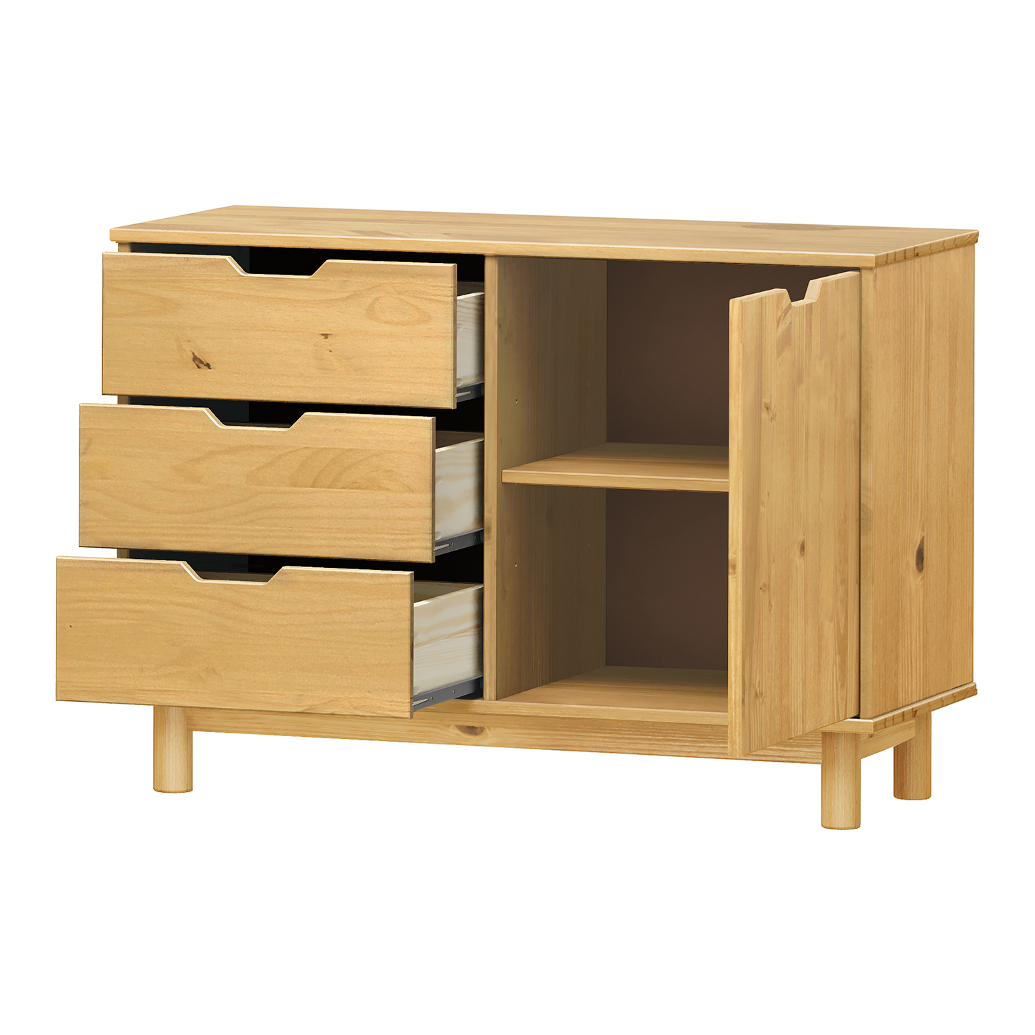 Produktcode: 32431VMaterial Kiefer massiv, lackiert3 Schubladen mit Metallschienen, 1 Tür, 1 Einlegeboden