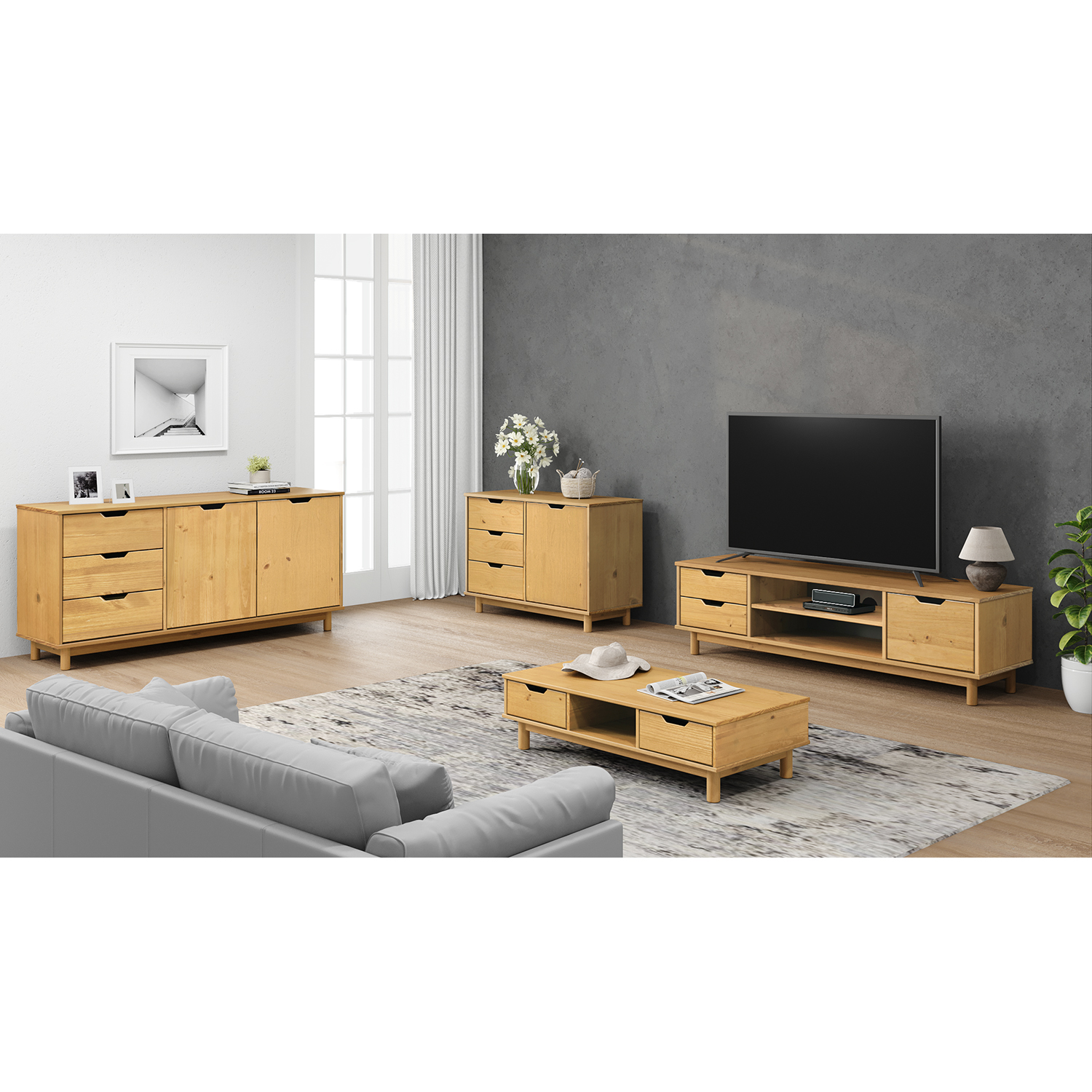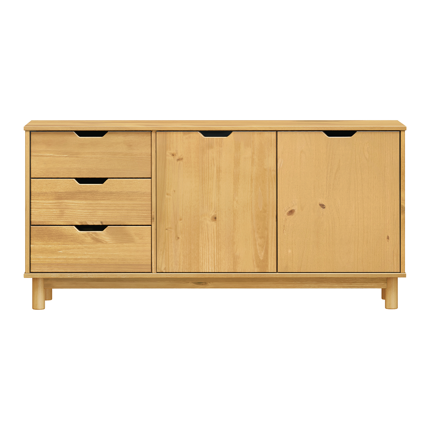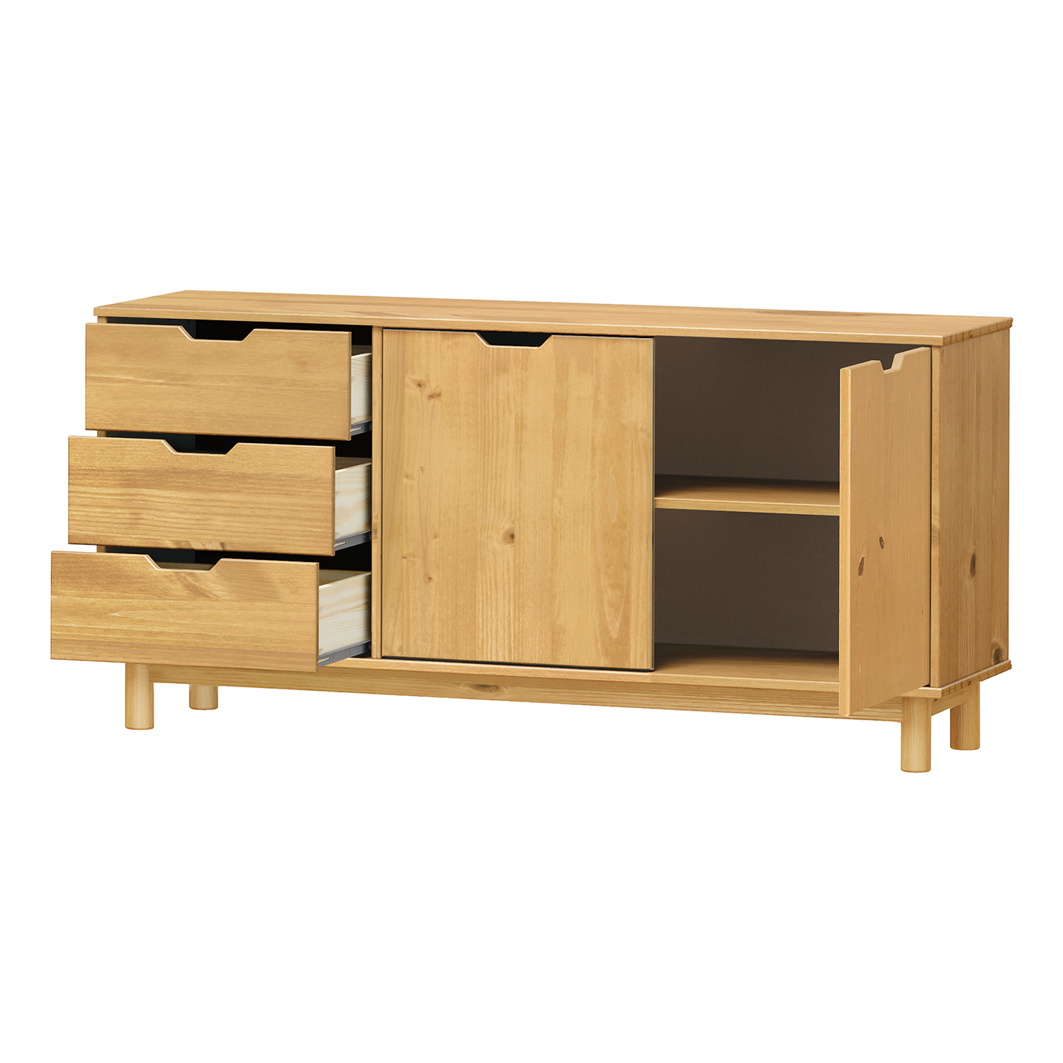 Produktcode: 32434BMaterial massives Kiefernholz gewachst in Honig-Ton3 Schubladen mit Metallschienen, 1 Tür, 1 Einlegeboden