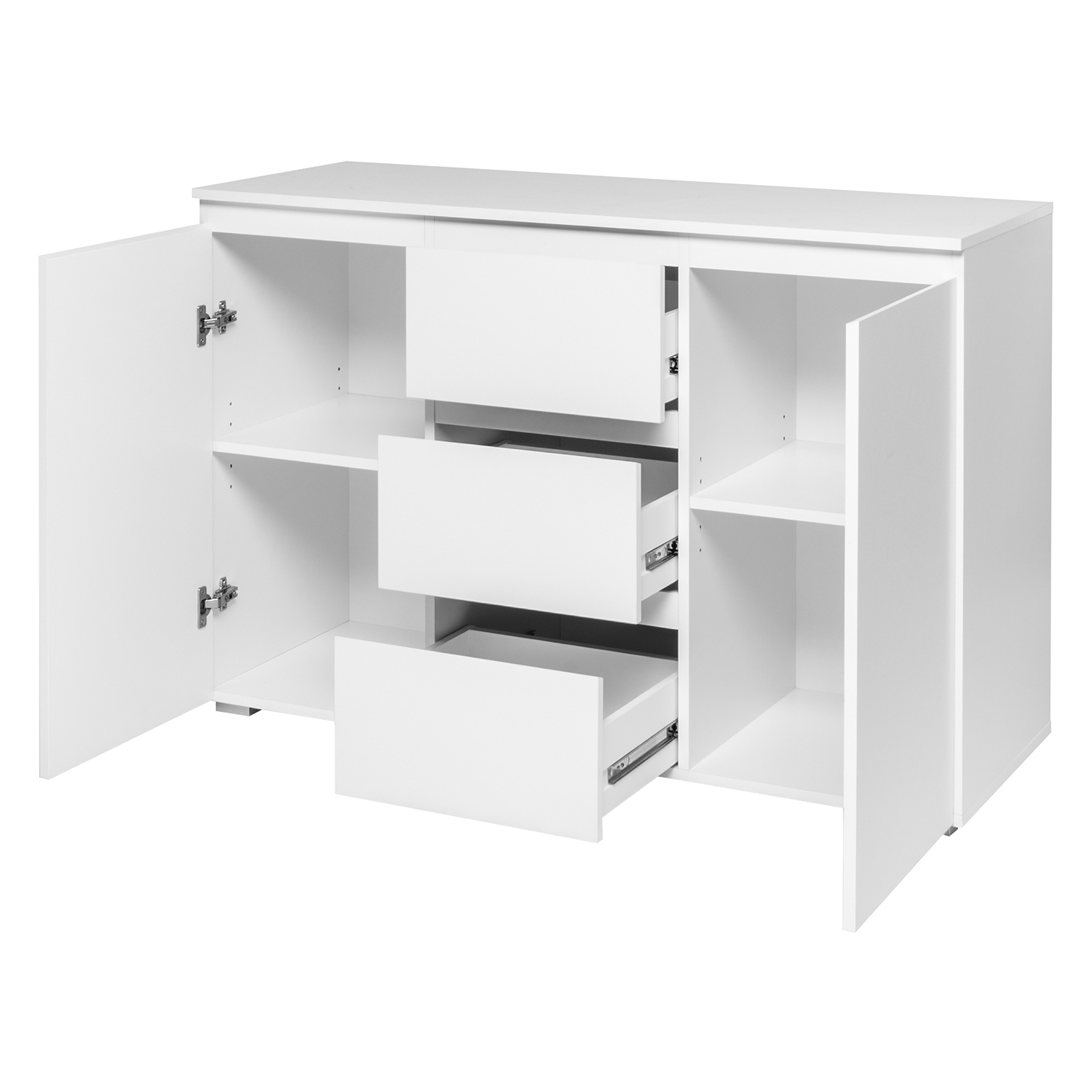 Produktcode: FN2636Farbe weiß 3 Schubladen mit Metallschienen 3 Türen, 2 variabler Einlegeboden