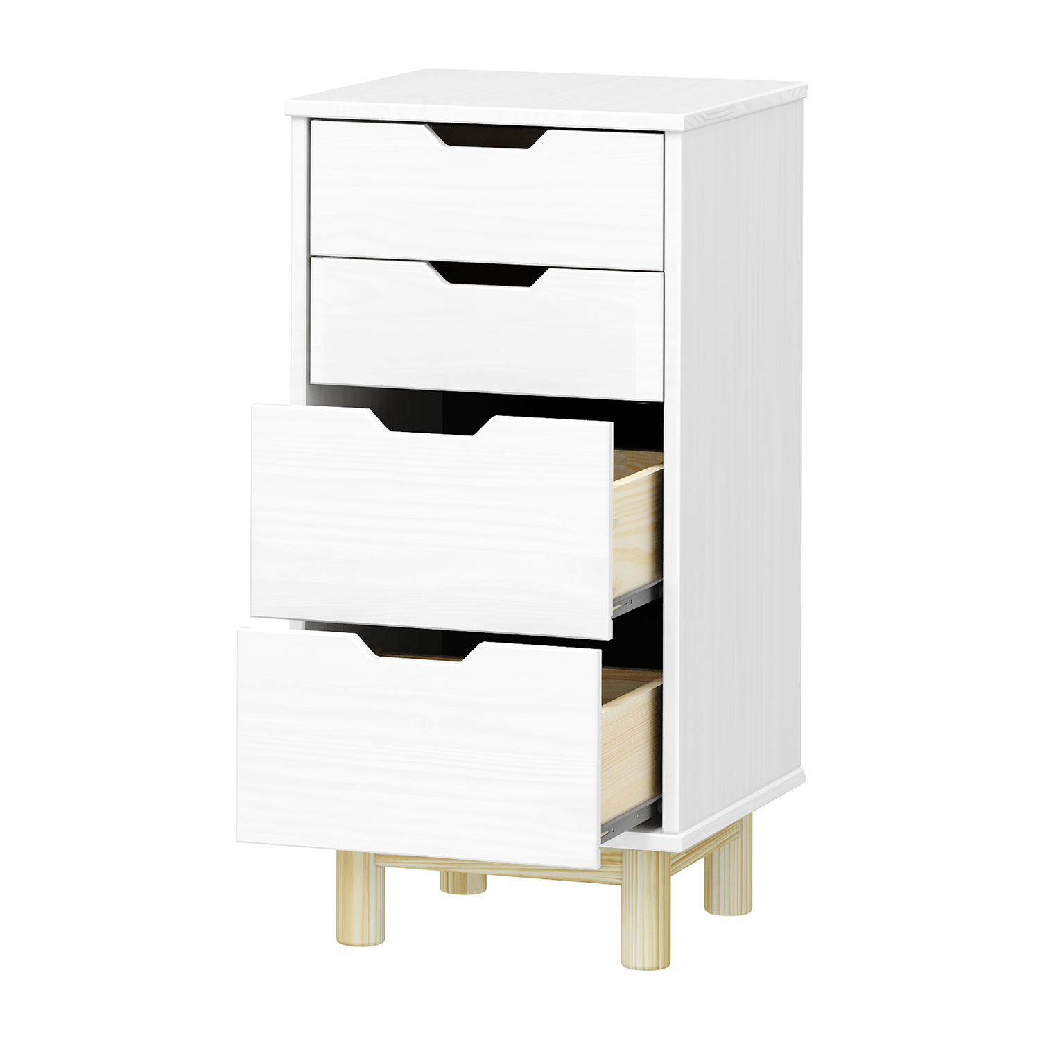 Produktcode: 324105VMaterial massives Kiefernholz, lackierte Oberfläche2 kleinere und 2 größere Schubladen mit Metallschienen