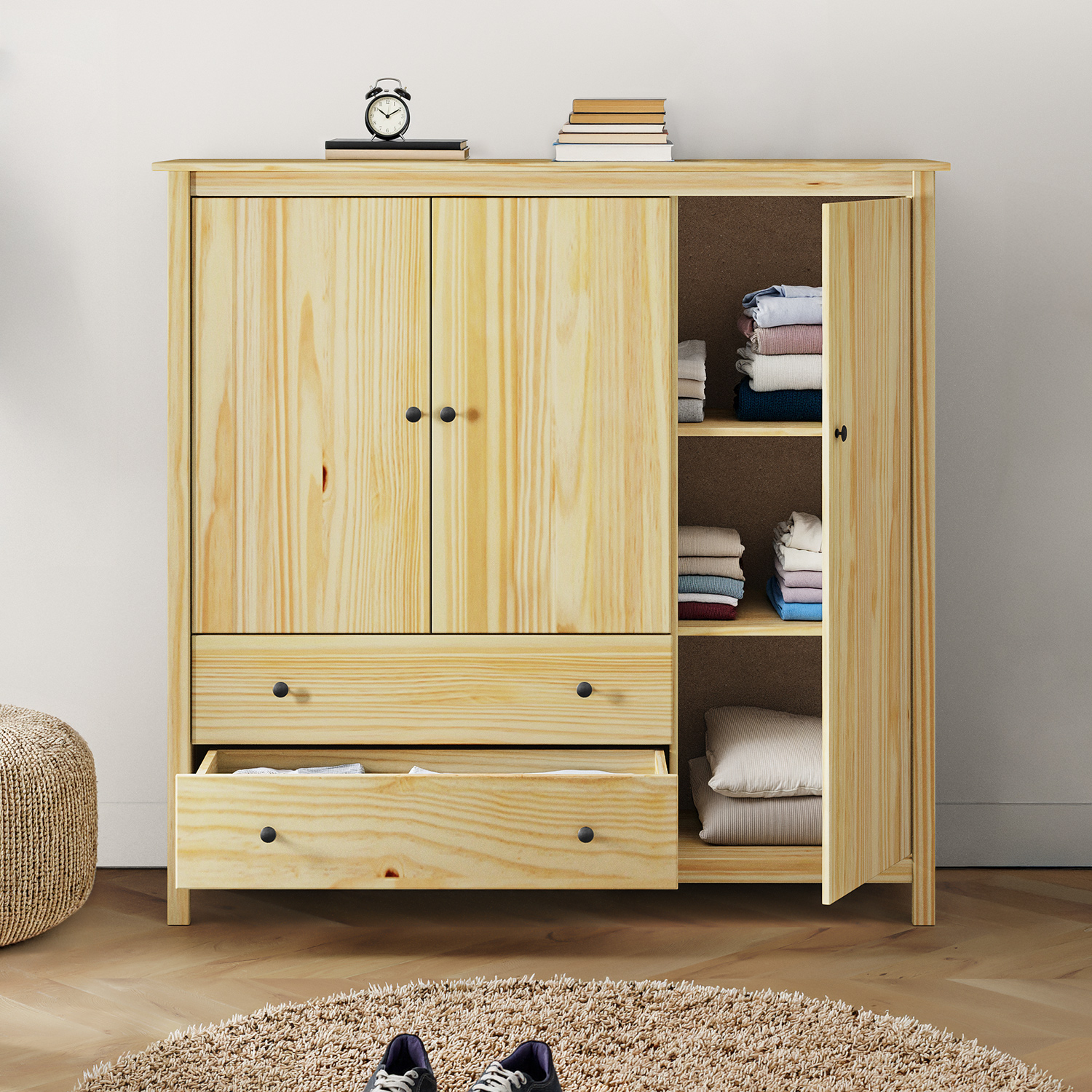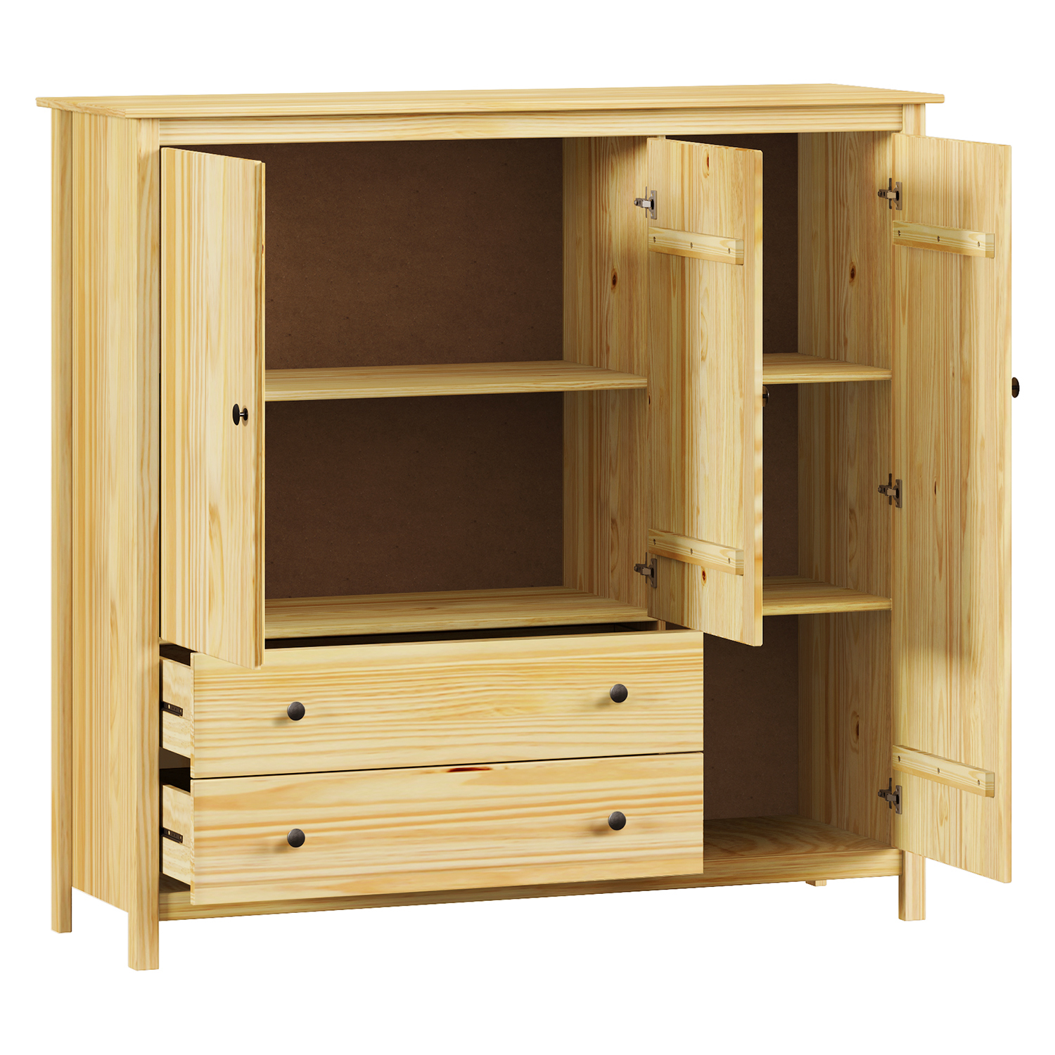 Die Kommode TORINO ist nicht nur ein Möbelstück. Sie ist ein stiller Organisator des Lebens, der weiß, wohin mit dem, was man nicht ausstellen, aber auf keinen Fall verlieren möchte. Er steht felsenfest und fühlt sich doch leicht an, fast so, als hätte er etwas Luftiges an sich. Das Kiefernholz verleiht ihm eine Ruhe, eine Reinheit und einen zeitlosen Ausdruck, der nicht anbiedernd wirkt, sondern von Dauer ist. Natürlich hat es 3 Türen und 2 Schubladen mit Metallgriffen und -schienen. Klingt technisch. Aber was wäre, wenn ich Ihnen sagen würde, dass jeder dieser Plätze das Potenzial hat, etwas Wichtiges zu beherbergen. Handgeschriebene Briefe. Eine Steppdecke, die nach Sommer riecht. Pullover, die Sie nur zu Hause tragen. Diese Kommode wird Sie nicht zwingen, sich etwas vorzustellen. Sie wird sich Ihnen anpassen. Egal, ob Sie ein Minimalist mit einem einzigen Satz Socken sind oder ein Chaot mit Schätzen, die Sie ohne System aufbewahren müssen. Die Kommode TORINO ist wie ein friedlicher Diener. Sie braucht keine Aufmerksamkeit. Sie kommt nicht in die Quere. Sie konkurriert nicht. Sie bietet einfach nur Platz. Und heute ist das nicht nur physisch, sondern auch mental. Es reinigt nicht nur die Wäsche, es reinigt den Kopf. Es ist ein Möbel, das nicht altert. Sie verlieren ihren Stil nicht. Sie verraten ihre Funktion nicht. Und was ist das Beste? Es fragt nicht, es dient einfach. Mit einer Bescheidenheit, die heute nicht alltäglich ist.