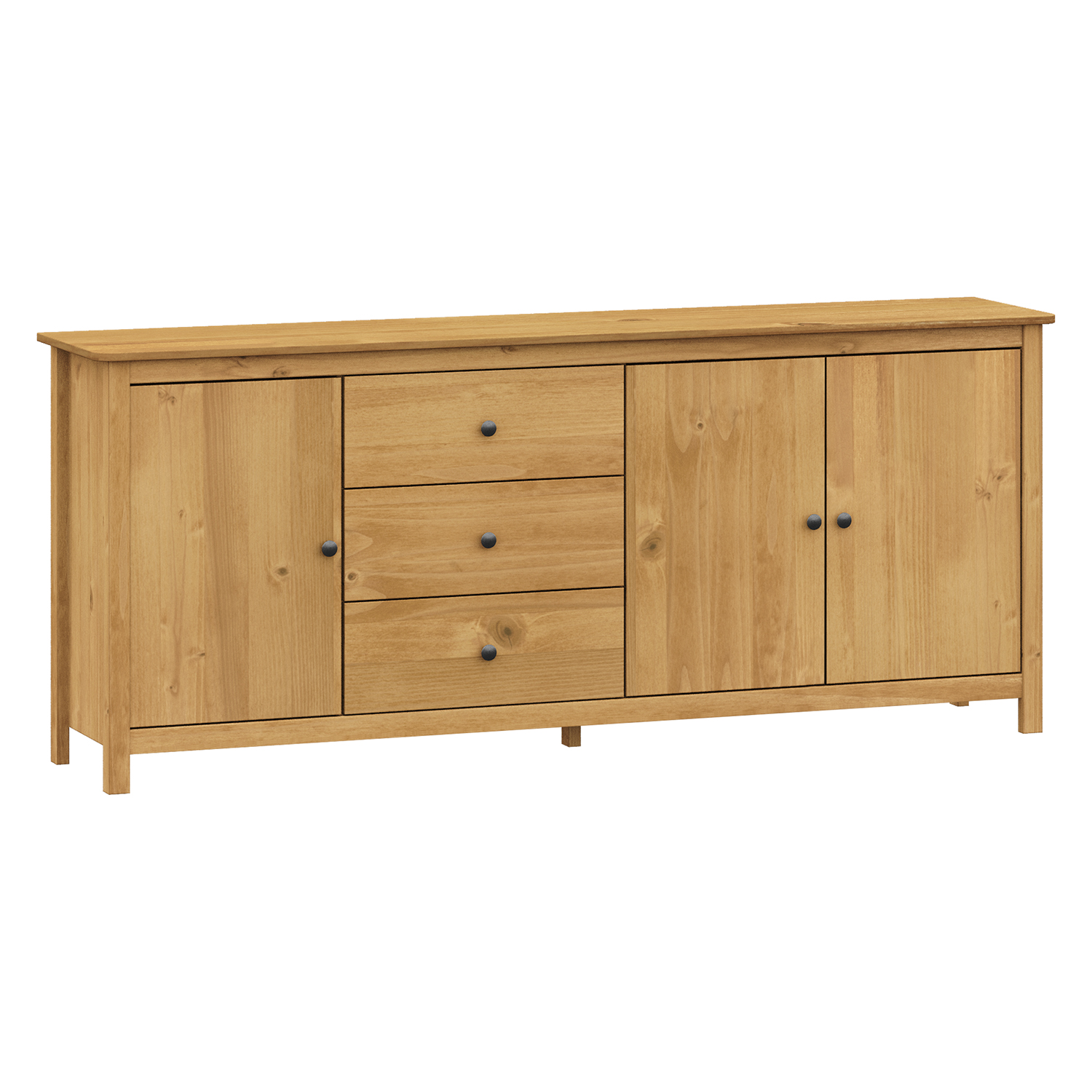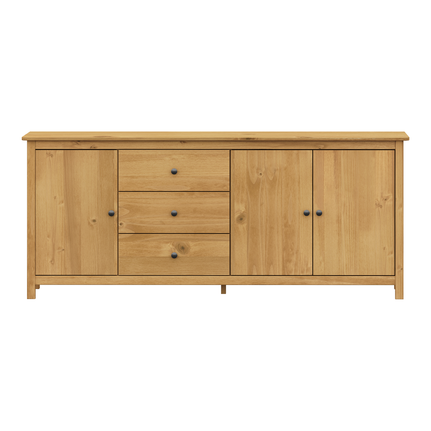 Produktcode: 8076VMaterial massives Kiefernholz gewachst in HonigtonMetallgriffe aus geschwärztem Messing3 Türen und 2 Schubladen mit Metallschienen