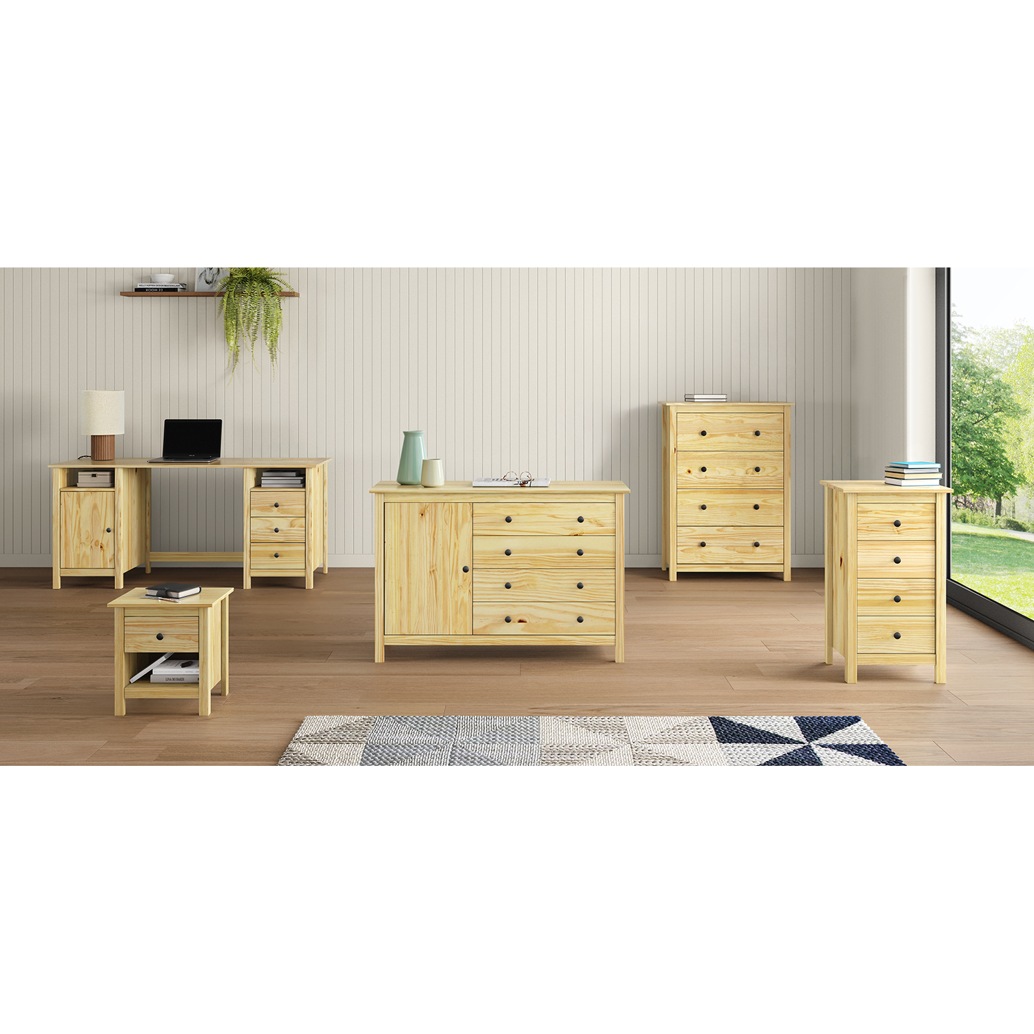 Produktcode: 68062KMaterial Kiefer massiv, lackiertMetallgriffe aus schwarzem Messing4 Schubladen mit Metallschienen, 2 massive Türen, 1 Einlegeboden