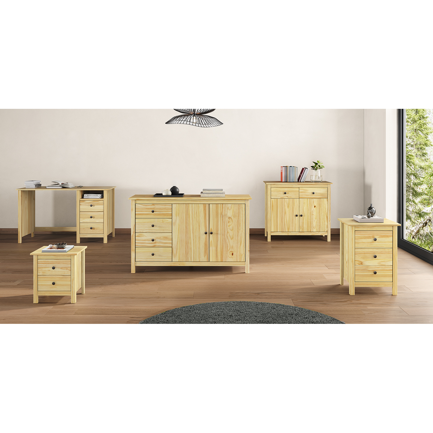 Produktcode: 68062KMaterial Kiefer massiv, lackiertMetallgriffe aus schwarzem Messing4 Schubladen mit Metallschienen, 2 massive Türen, 1 Einlegeboden