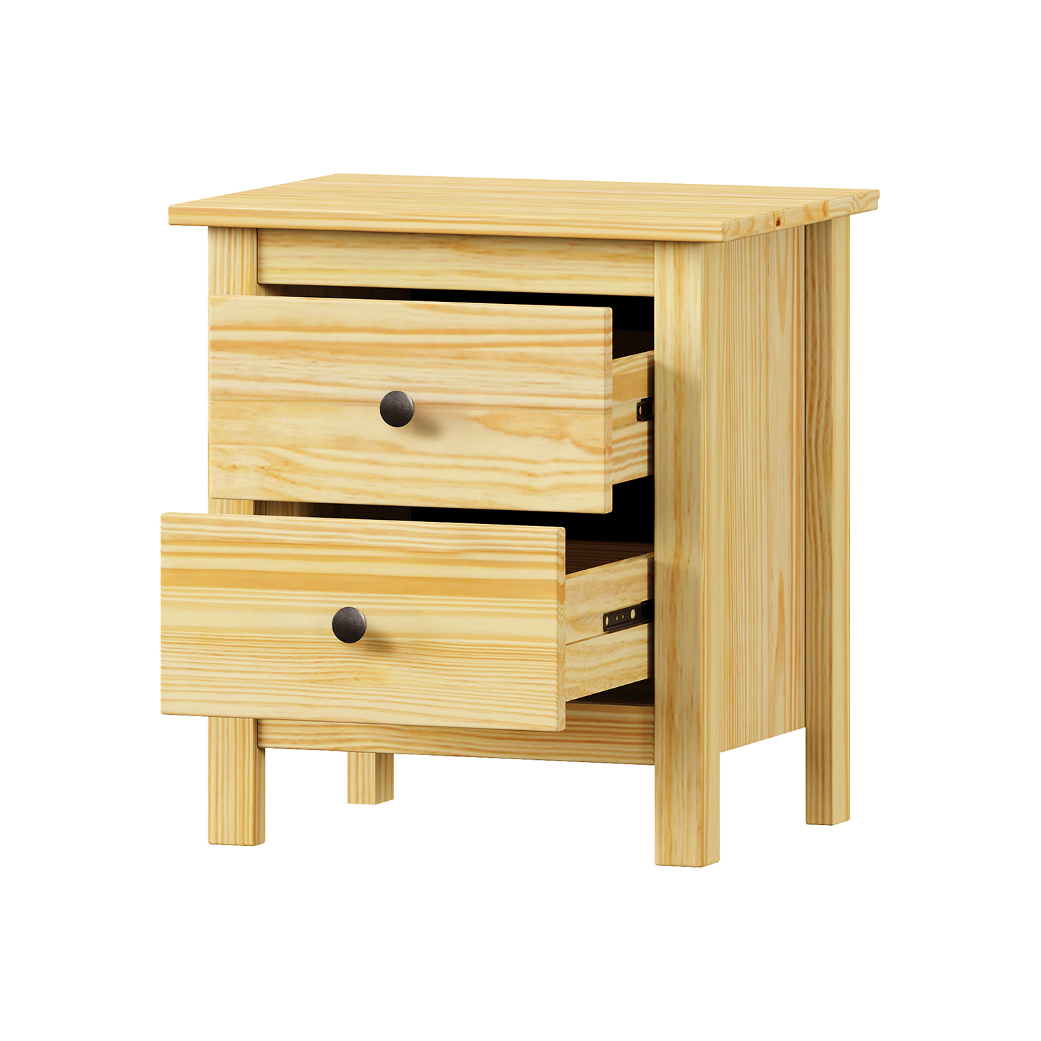 Produktcode: 8093KMaterial Kiefer massiv, lackiertMetallgriffe aus schwarzem Messing2 Schubladen mit Metallschienen, 1 Einlegeboden