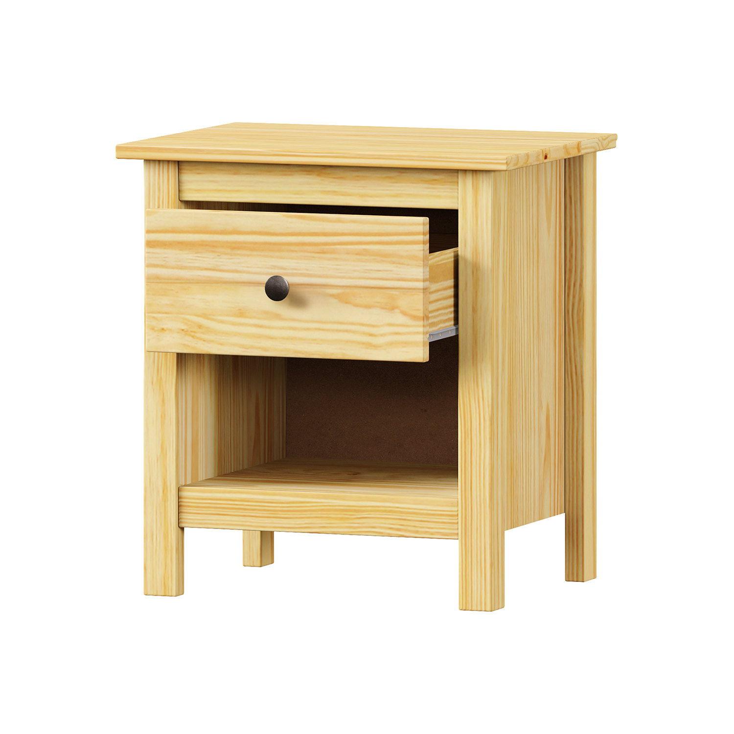 Produktcode: 8181Material Kiefer massiv, lackiertMetallgriffe aus schwarzem Messing1 Schublade mit Metallschienen, 2 massive Türen, 1 Einlegebodenmaximale Belastbarkeit in der Montageanleitung angegeben