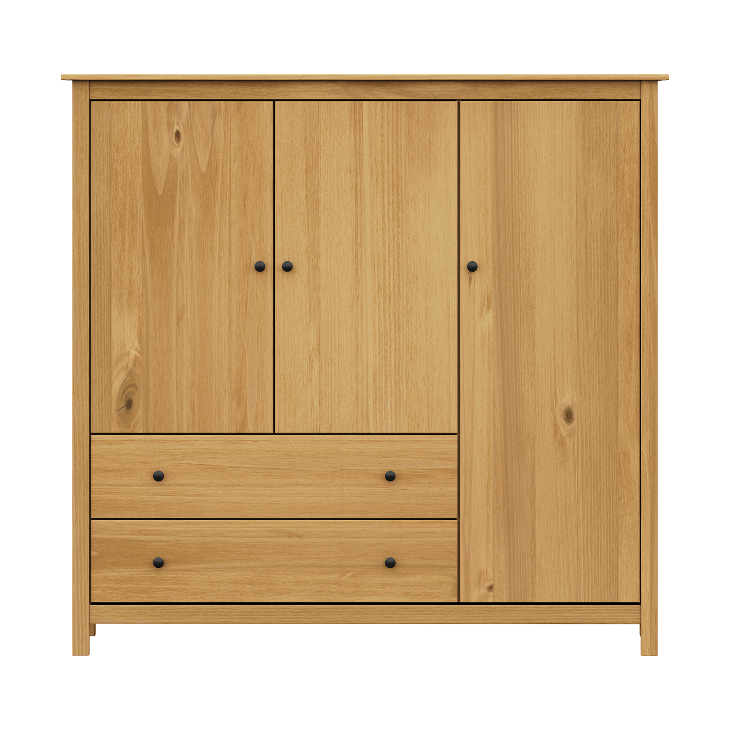 Produktcode: 4487Material massives Kiefernholz gewachst in Honigton Metallgriffe aus geschwärztem Messing Kleiderschrank mit Garderobenstange und Regal Schublade am Boden mit Metallschienen Empfohlener Auszug 8188V