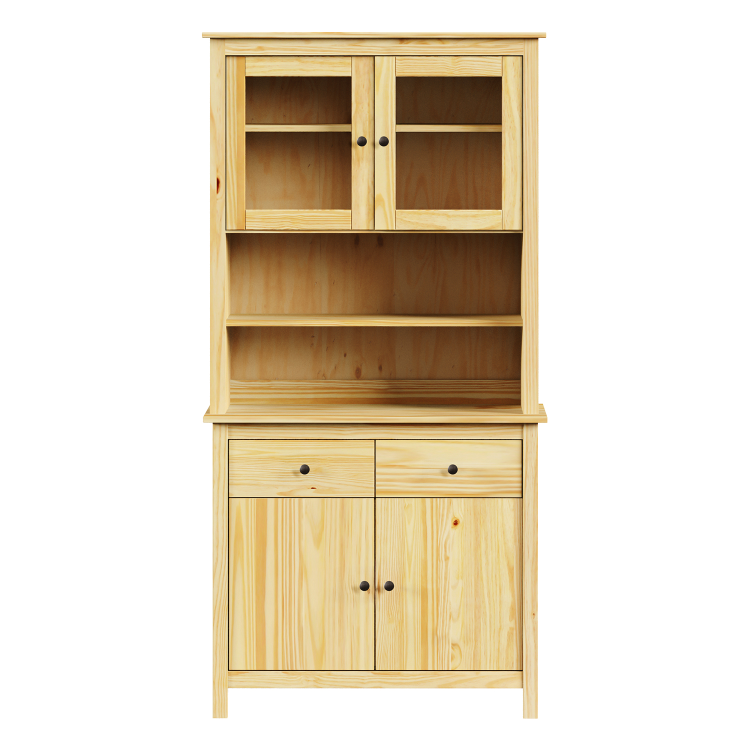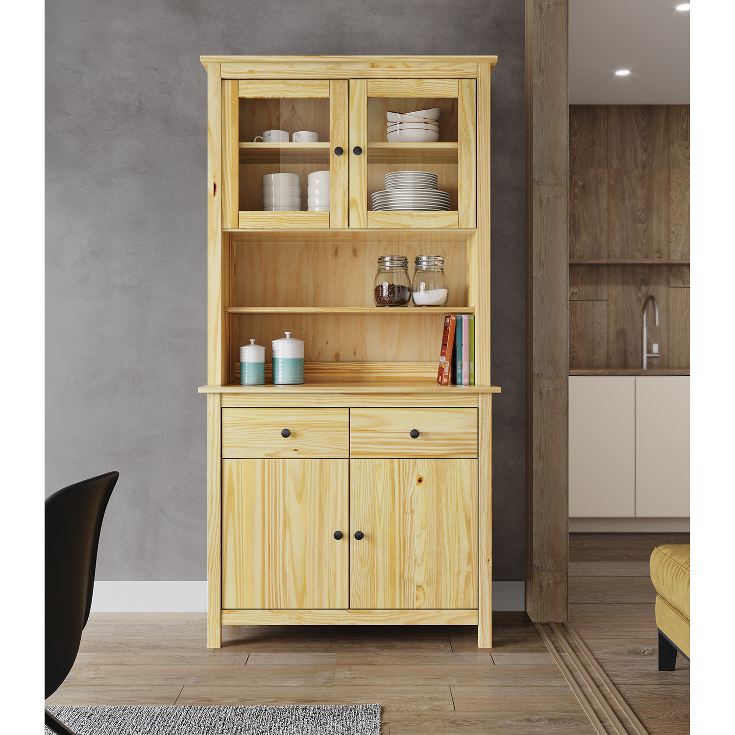 Die Anrichte TORINO ist ein elegantes Möbelstück, das praktischen Stauraum bietet und gleichzeitig den Stil des gesamten Raumes unterstreicht. Es ist aus massiver Kiefer gefertigt und seine Oberfläche ist lackiert, was die natürliche Maserung des Holzes hervorhebt und es gleichzeitig vor Abnutzung schützt. Zwei Glastüren verleihen der Erweiterung einen luftigen Charakter und setzen einen dezenten optischen Akzent. Sie eignen sich hervorragend für die Präsentation von Gläsern, Porzellan oder Dekorationen, die Sie gut sichtbar, aber vor Staub geschützt aufbewahren möchten. Im Inneren teilt ein praktischer Einlegeboden den Raum in zwei Bereiche. So können Sie den Inhalt so anordnen, dass alles seinen Platz hat. Unter dem Glasteil befindet sich ein offenes Fach, das sich beispielsweise für Bücher, kleinere Accessoires oder stilvolle Dekorationen eignet. Die Metallgriffe passen zum Gesamtbild und verleihen dem Möbel ein dezentes Industrieelement. Diese Erweiterung ist die richtige Wahl für alle, die natürliche Materialien, einen schlichten Stil und hochwertige Handwerkskunst schätzen. Es ist ein Möbelstück, das sich keinem Trend unterwirft, sondern über viele Jahre hinweg praktisch und schön bleibt.