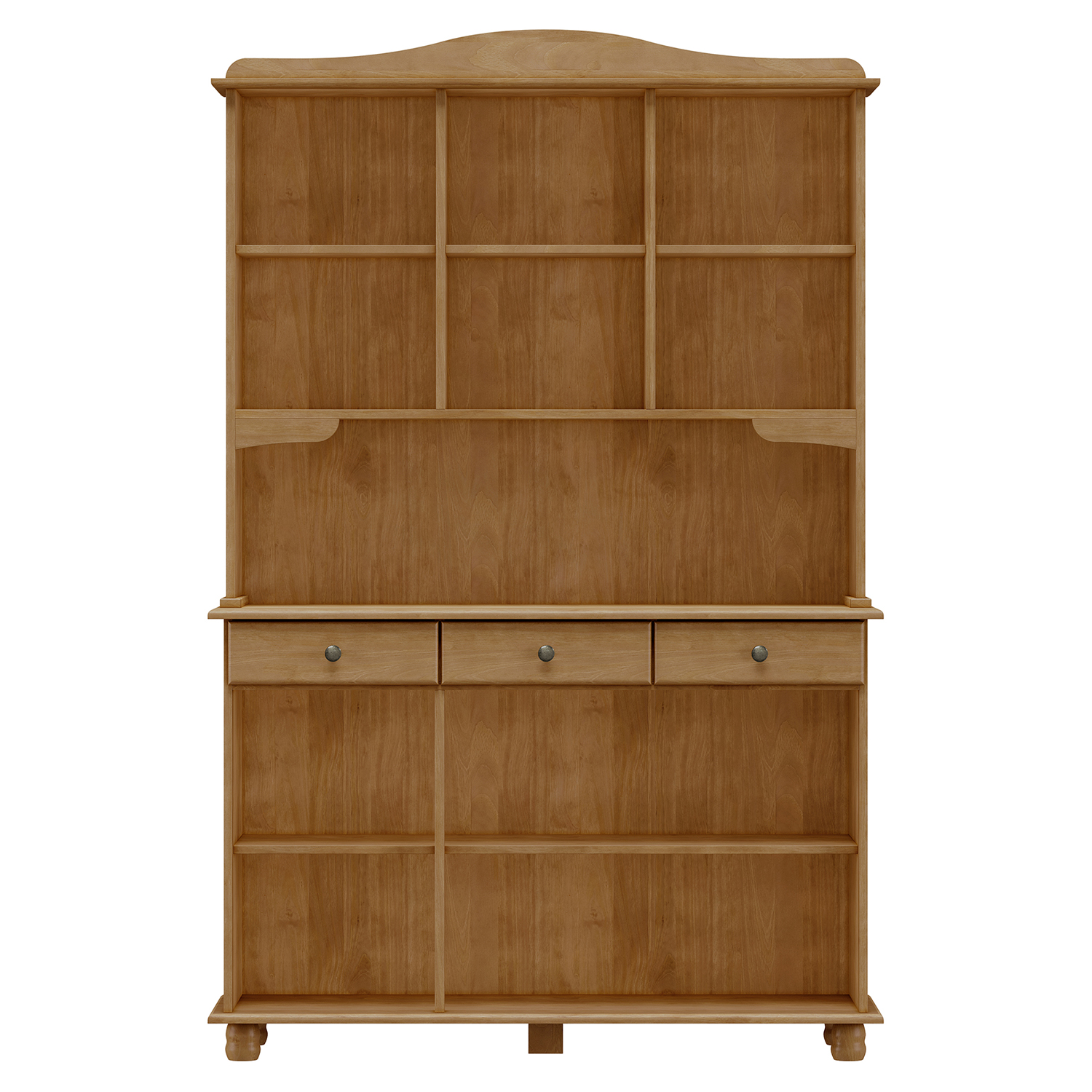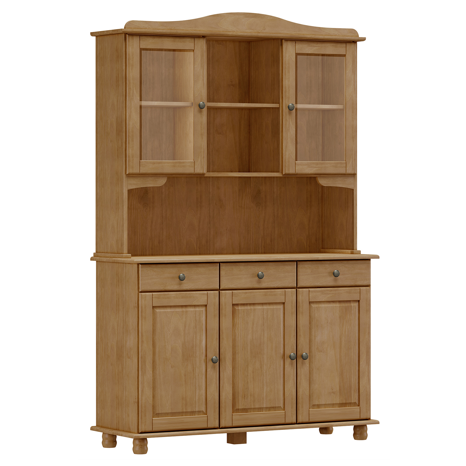 Material Kiefer massiv, Farbe dunkelbraun3 Türen im unteren Bereich, 3 Schubladen mit Metallschienenzwei Glastüren im oberen Bereich