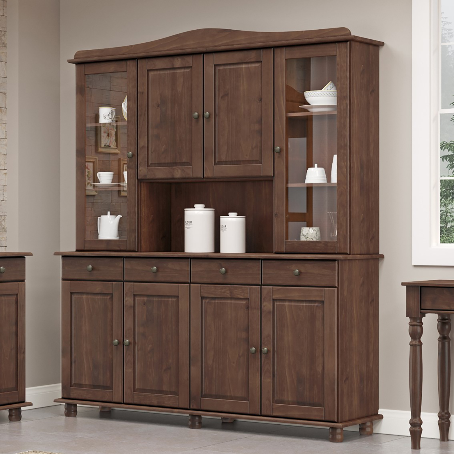 Das RUBI Sideboard mit Erweiterung in Dunkelbraun wirkt wie eine materialisierte Ruhe und Eleganz in einem. Auf den ersten Blick erweckt es den Eindruck, nicht nur ein Möbelstück zu sein, sondern ein Begleiter, der weiß, wie man die Dinge zusammenhält. Die massive Kieferkonstruktion ist robust und wirkt warm, ohne den Raum zu erdrücken. Die Oberfläche mit ihrem dunklen Braunton bringt Tiefe und Raffinesse, ohne dass Kitsch von den praktischen Qualitäten ablenkt. Im unteren Teil des Sideboards befinden sich vier Schubladen mit Metallschienen und vier Türen, hinter denen sich flache Einlegeböden befinden, die sich ideal für Teller, Töpfe oder Kisten mit Kleinigkeiten eignen, die Sie griffbereit haben möchten, aber nicht im Blickfeld haben wollen. Das Sideboard RUBI ist bereit, sie aufzunehmen. Der Anbau ist ein weiterer Raum, der nicht schreit, sich aber dennoch anbietet. Er kann genutzt werden, um kleine Dinge zu verstecken oder Dekorationen, Bücher oder Pflanzen auszustellen, um den Raum gemütlich zu machen. Das dunkelbraune Dekor verbindet ungewollt den modernen Stil mit einem Hauch von Tradition. Es ist weder überdekorativ noch übertrieben rustikal. Es ist ein Möbel, das all jene anspricht, die etwas suchen, das heute und in zehn Jahren noch gut aussieht. Es wird Sie auf subtile Weise mit seiner Praktikabilität und seiner Fähigkeit überraschen, Dinge aufzubewahren, von denen Sie nicht einmal wussten, dass Sie sie brauchen. Wenn Sie sich über ihn beugen, werden Sie die Qualität des Materials spüren. Wenn Sie ihn benutzen, werden Sie den Platz und die Ruhe, die er in den Raum bringt, zu schätzen wissen. Bei RUBI geht es nicht nur um Stauraum. Es geht um das Gefühl, jemanden im Haus zu haben, der die Dinge zusammenhält, während man sich um wichtigere Dinge kümmert.