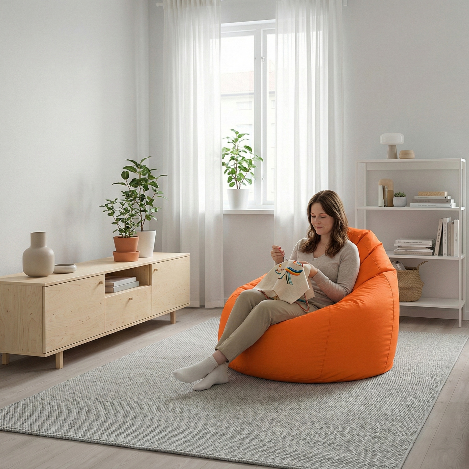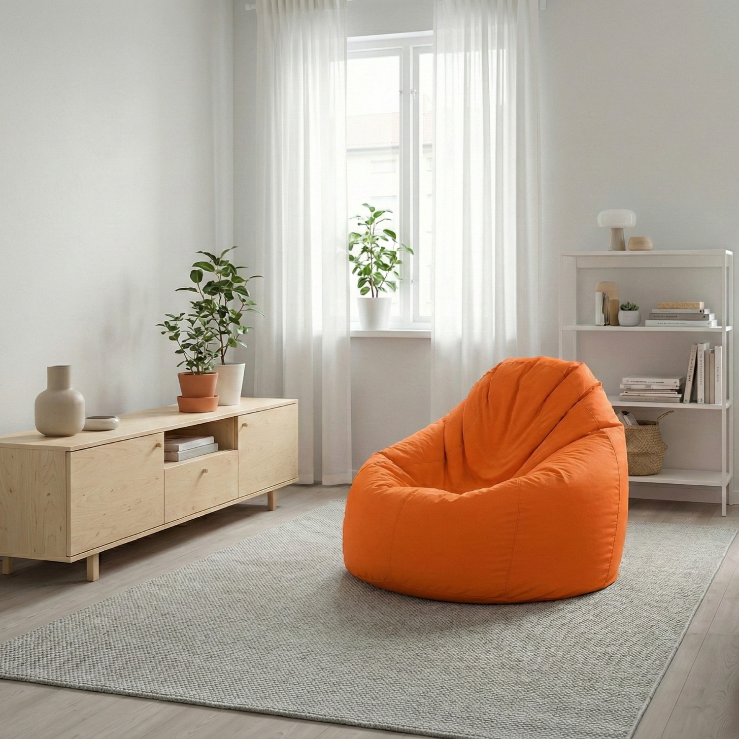 Genießen Sie Ihre Entspannungsecke in vollen Zügen und stellen Sie eine bequeme Sofatasche hinein, die Sie mit niemandem teilen müssen. Der JUMBO V10N ist Ihre private Oase der Ruhe und Entspannung. Die saftig-orangefarbene Tasche entführt Ihre Gedanken auf eine tropische Insel. Setzen Sie sich einfach in die orangefarbene Tasche, nehmen Sie einen Drink in die Hand und genießen Sie das Nichtstun wie im Sommerurlaub. Die Tasche ist sehr bequem und angenehm, denn sie ist mit Styroporkugeln gefüllt und kann mit Hilfe des Reißverschlusses in ihrer Steifigkeit verändert werden. Lassen Sie sich von nichts und niemandem stören und lehnen Sie sich auf Ihrem tollen Sack zurück. Die JUMBO Sofatasche kann entweder in der Leseecke in Ihrem Schlafzimmer oder zum Entspannen in Ihrem Büro platziert werden. Die JUMBO Sofatasche unterhält Ihre Kinder im Kinderzimmer, aber auch Besucher am Pool im Garten. Wo auch immer diese tolle Tasche steht, für Spaß und entspannte Atmosphäre ist immer gesorgt. Der Inhalt der Tasche kann sich im Laufe der Zeit verändern. Die Füllung kann nachgekauft und nachgefüllt werden.