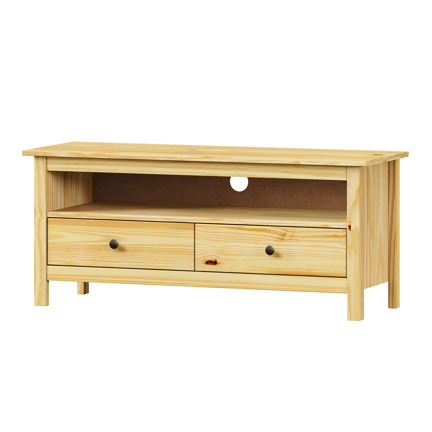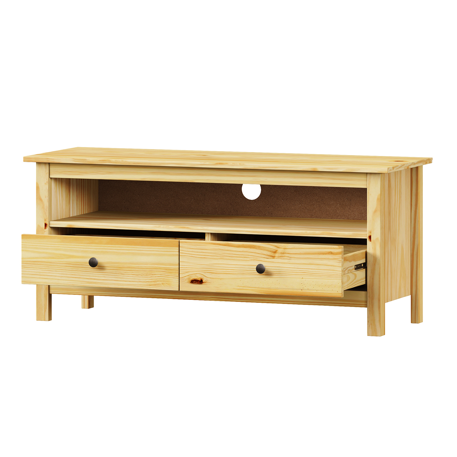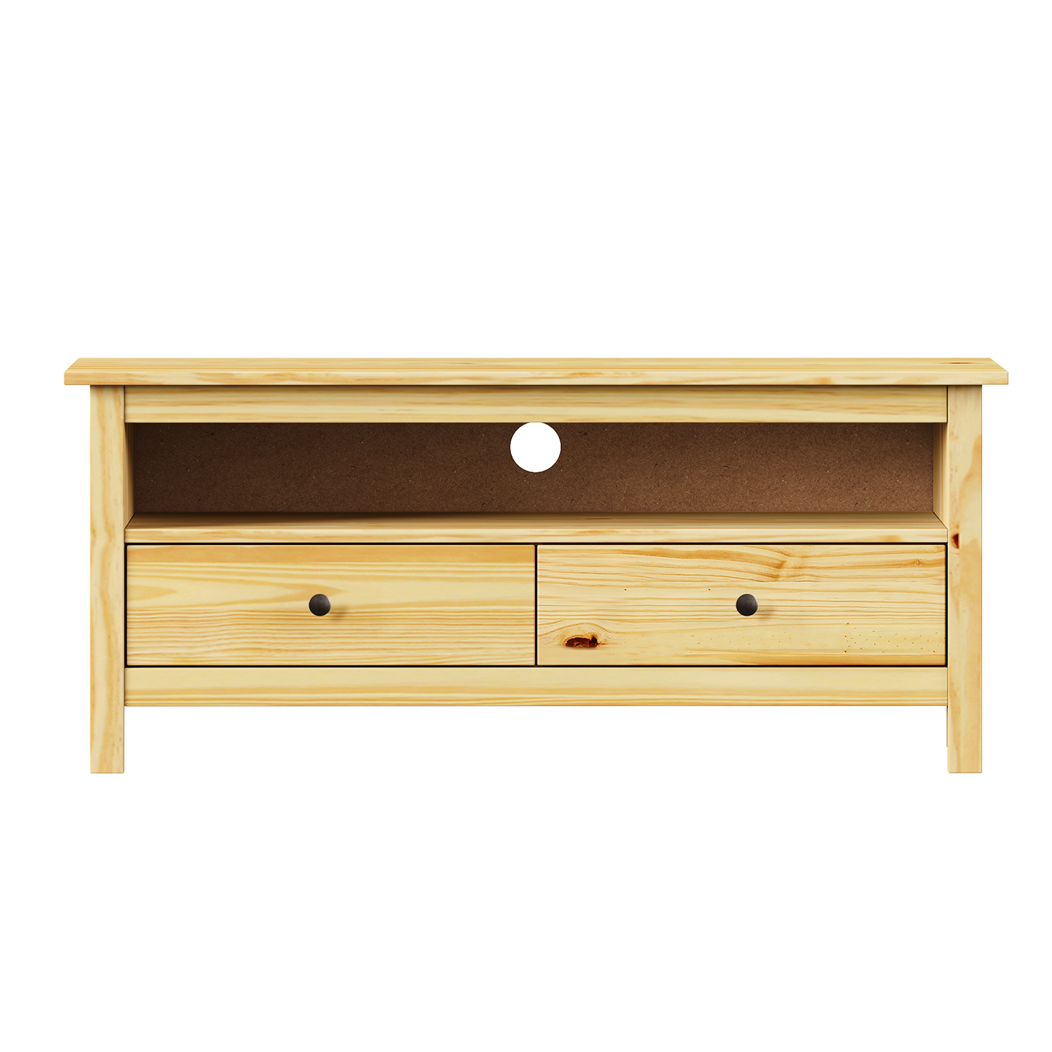 Der Fernsehtisch TORINO ist ein Möbelstück, das genau weiß, was es tut. Er zwängt sich nicht in Trends, sondern wirkt solide, natürlich und selbstbewusst. Massives Kiefernholz in lackierter Ausführung schafft eine warme Basis, die sich nicht mit Plastik oder übertriebenen Verzierungen aufhält. Es ist ein ehrliches Möbelstück, das sowohl Tiefe als auch Charakter hat. Das Holz hat eine Textur, eine Maserung und einen Duft, den keine Imitation erreichen kann. Zwei tiefe Schubladen bieten Stauraum, der nicht gleich bei der ersten großen Veränderung des Lebensstils verschwindet. Egal, ob Sie Ihre Fernbedienungen, Ladegeräte oder alten DVD-Filme darin verstauen, alles hat seinen Platz. Die Metallgriffe dienen nicht der Show, sondern dem sicheren Griff. Sie glänzen so, wie man es von Metall erwartet, und halten genau so, wie man sie braucht. Die obere Platte ist stabil, so dass Sie sich keine Gedanken darüber machen müssen. Ob Fernseher, Lautsprecher, eine Blume oder ein Buch, alles findet auf ihr sein Gleichgewicht. Die Abmessungen sind gut durchdacht, so dass der Tisch nicht wuchtig wirkt, aber dennoch dem täglichen Gebrauch standhält. Er eignet sich nicht nur für den Platz unter dem Fernseher, sondern auch als niedrige Kommode im Wohnzimmer, Arbeits- oder Schlafzimmer. TORINO ist keine Einheitslösung, sondern ein ehrliches Fundament, auf dem man aufbauen kann.