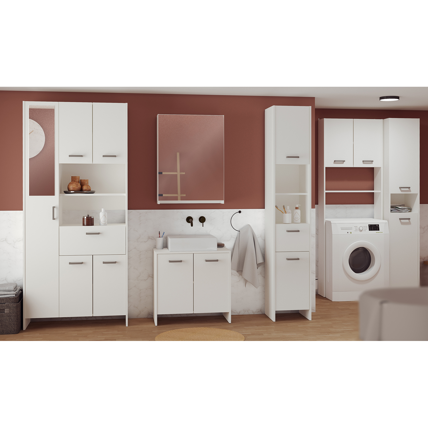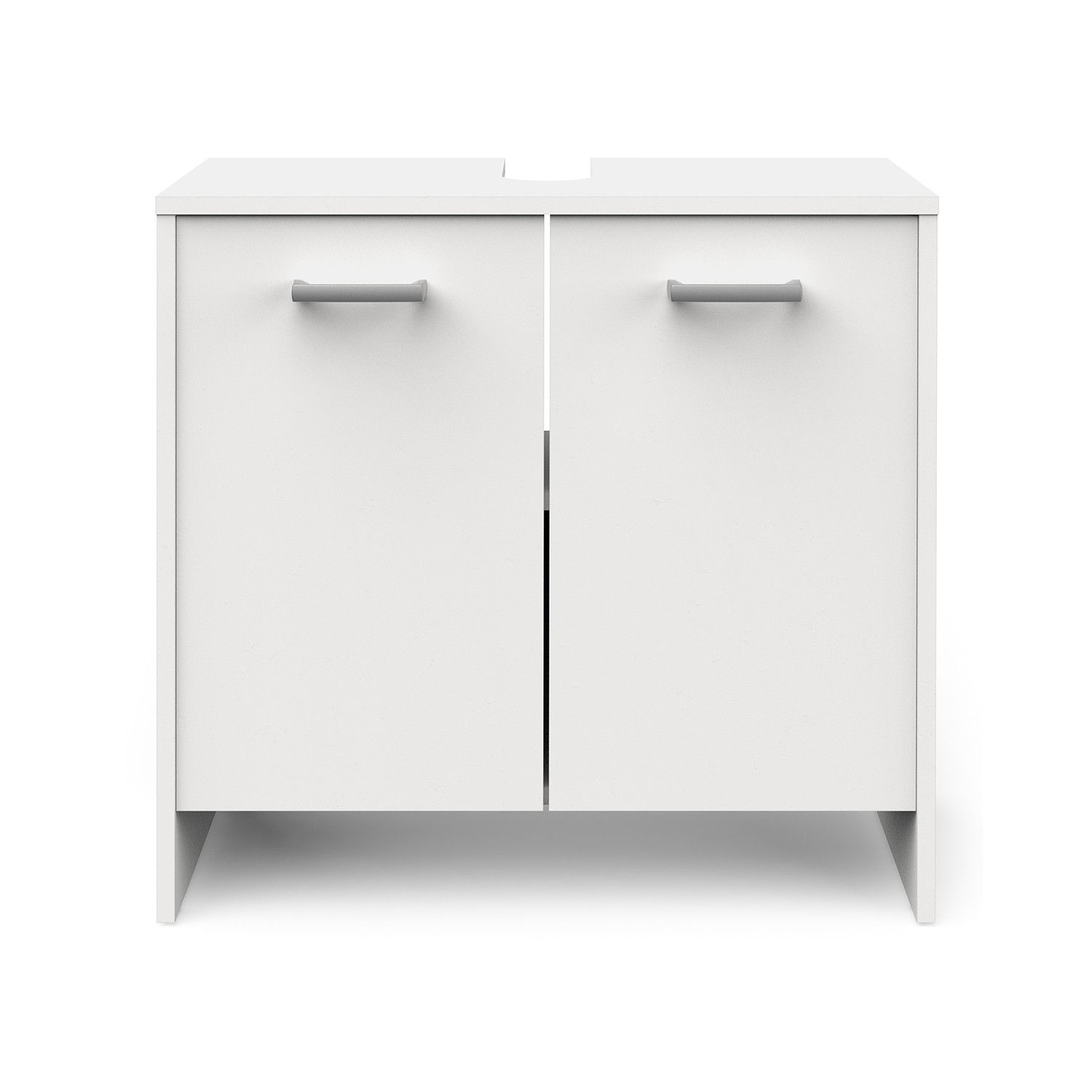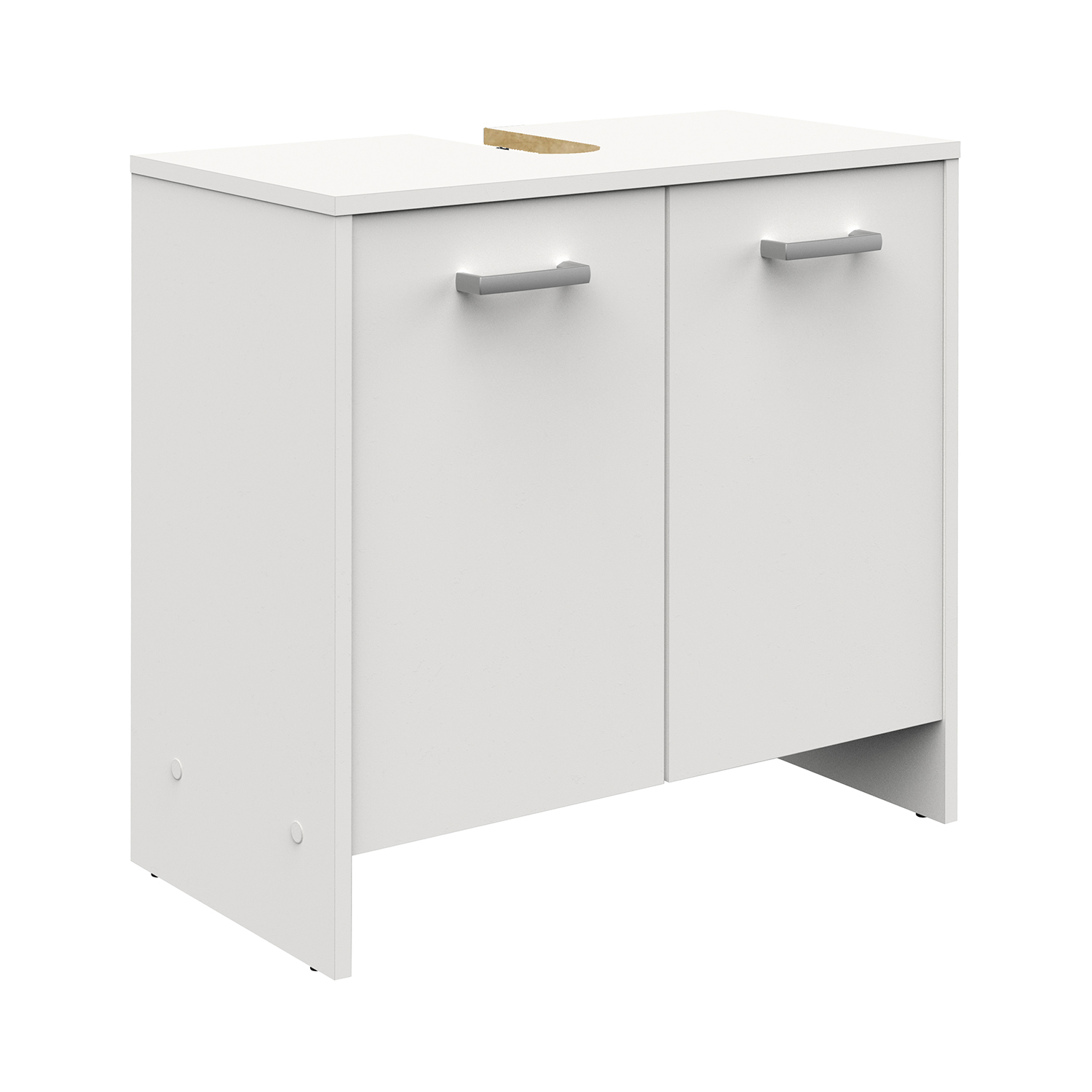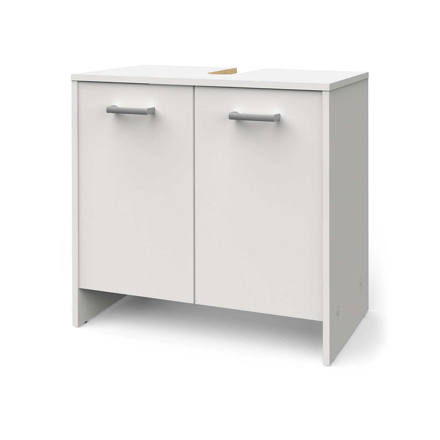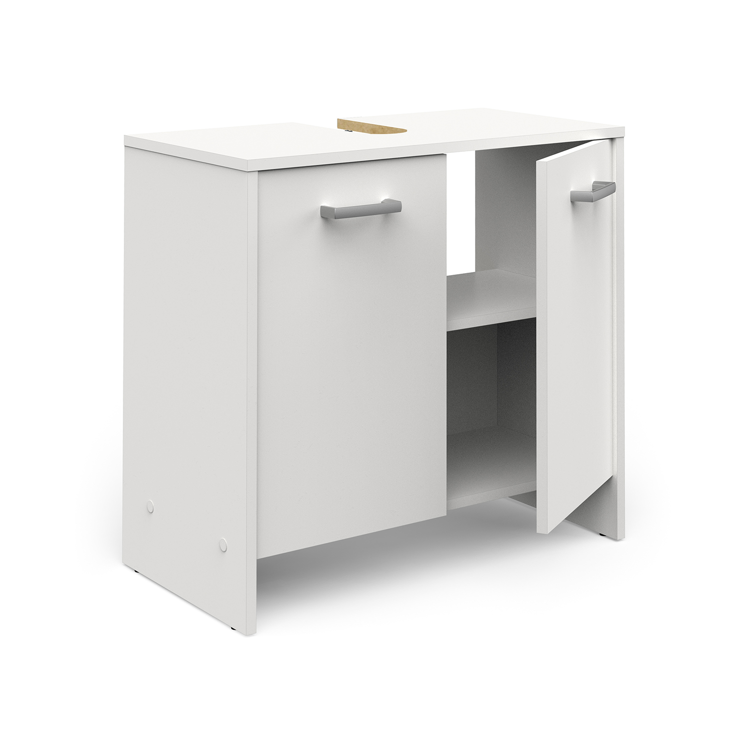 Wenn genügend Platz für einen Unterschrank unter dem Waschbecken vorhanden ist, gibt es keinen Grund, diesen Platz nicht zu nutzen. Der KORAL Untertischschrank in Weiß passt am besten zu den anderen KORAL Badmöbeln. In dem Raum hinter der Tür auf dem Regal können Sie Handtücher stapeln oder verschiedene Flaschen mit Cremes, Gels und Shampoos ausstellen. Der kleine Schrank ist auch ein toller Helfer beim Putzen des Badezimmers. Das Badezimmer sieht viel besser aus, wenn alle Dinge in den Schränken und Schubladen aufgeräumt sind, und die weißen Möbel wirken frisch und lassen den Raum optisch größer erscheinen. Handtücher und Seifen liegen immer unter dem Waschbecken bereit.